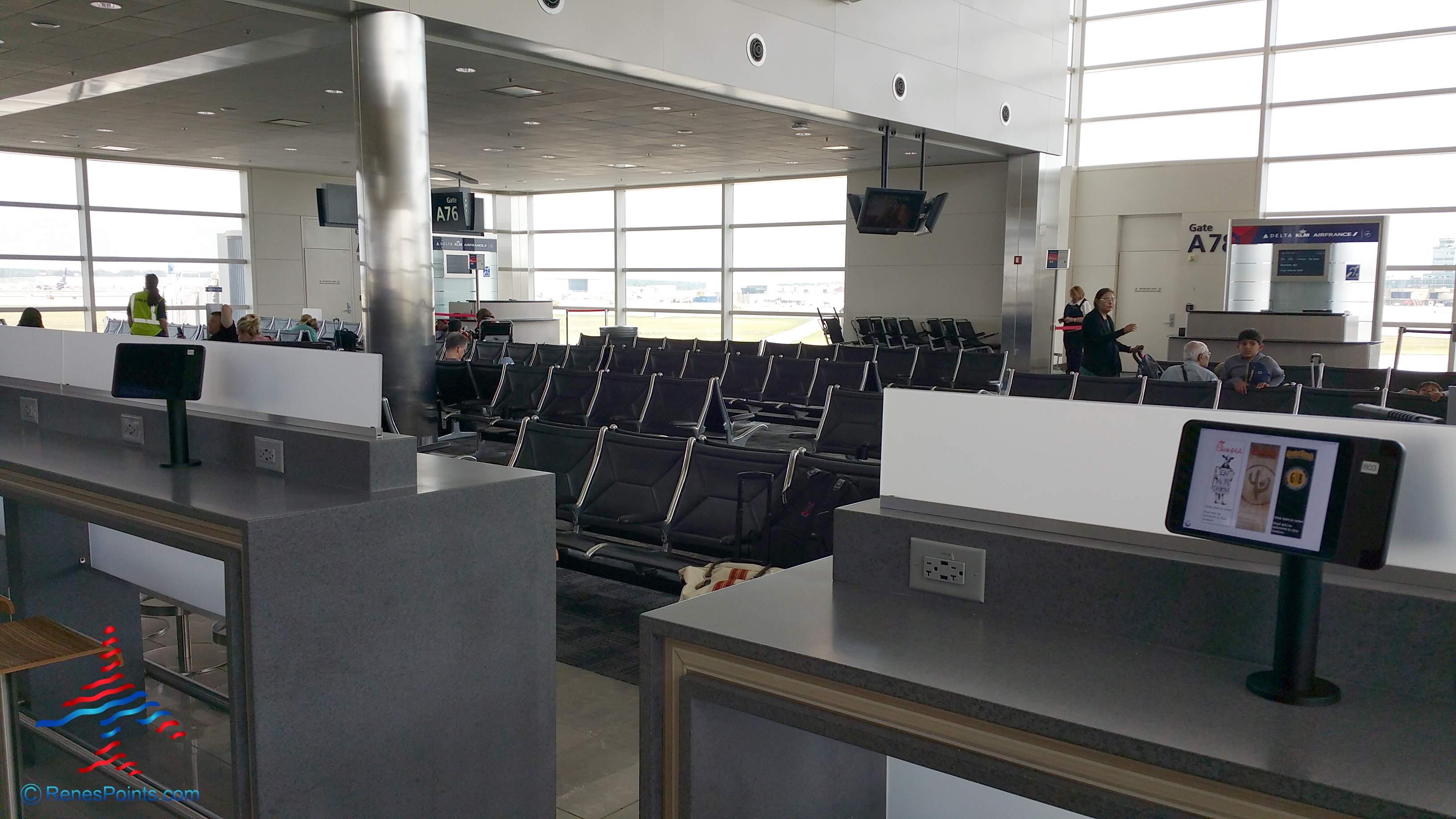 Lastly, depending on how many flights are departing at this end, seating can be wide open and spacious as you see in my shot.