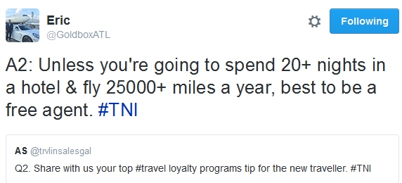 Where the major airlines are threatening their own bottom line is with the Credit Card situation. It is easy to find independent credit cards that offer 2 miles (cents) per $ spent. If the value of Skymiles, AAdvantage, Mileage Plus is less than 2 cents per $ spent, then that individual is better off as a free agent and using cards such as Capital One.