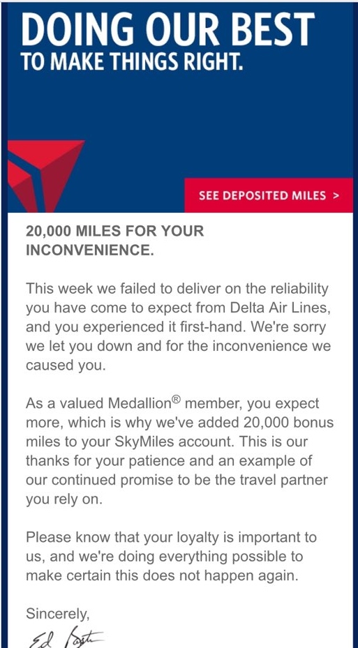 But it brings up the simple question why did Delta not just offer ONLY 20,000 SkyMiles (or some other number) to each affected passenger? The simple answer is not everyone is a SkyMiles member but I think there is really more to it than this.