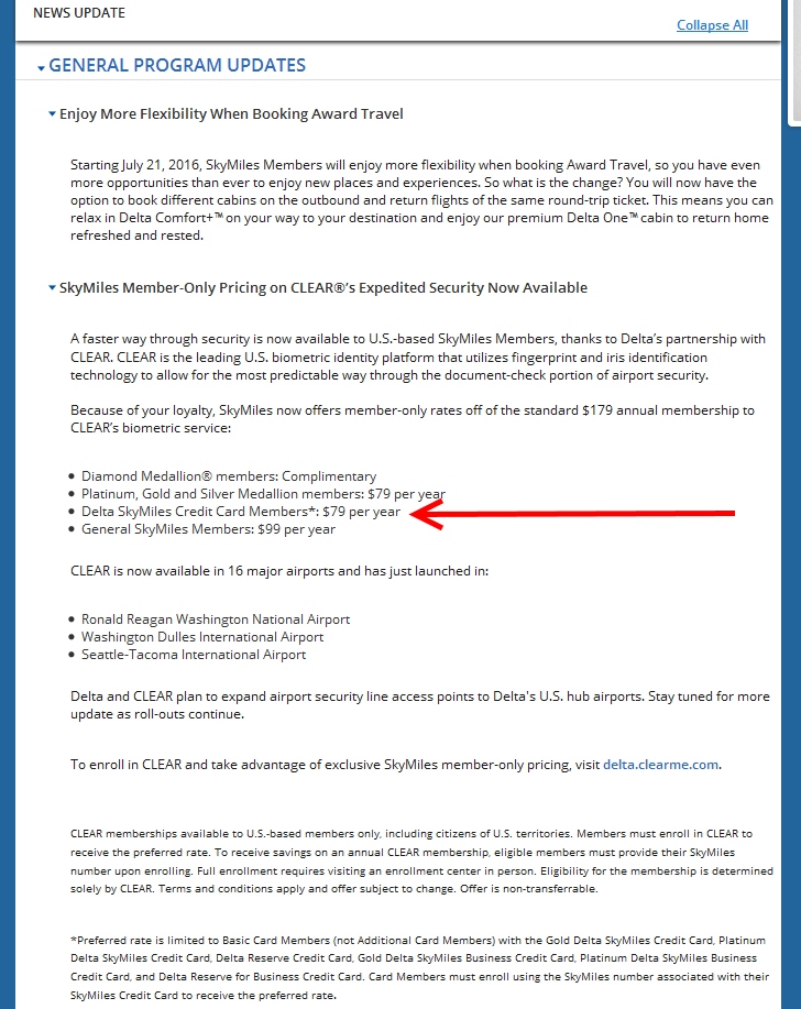 I am clearly a HUGE fan now of CLEAR. When you can combo CLEAR with TSA PreCheck you are just “flying” through security. I cannot wait as a frequent Delta flyer for CLEAR to expand to all the Delta hubs. But notice a change today on the Delta news & updates site.