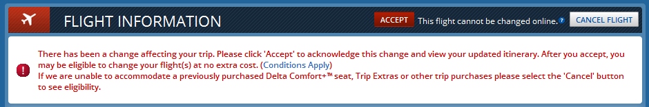 I had an international one that only had a regional jet impacted but I was smart enough NOT to click anything on Delta.dumb and called. Even the Delta Diamond rep had issues and had to get a supervisor on the line. Had I just clicked on stuff I expect very bad things would have happened to me. Please take the time to read the linked posts above.
