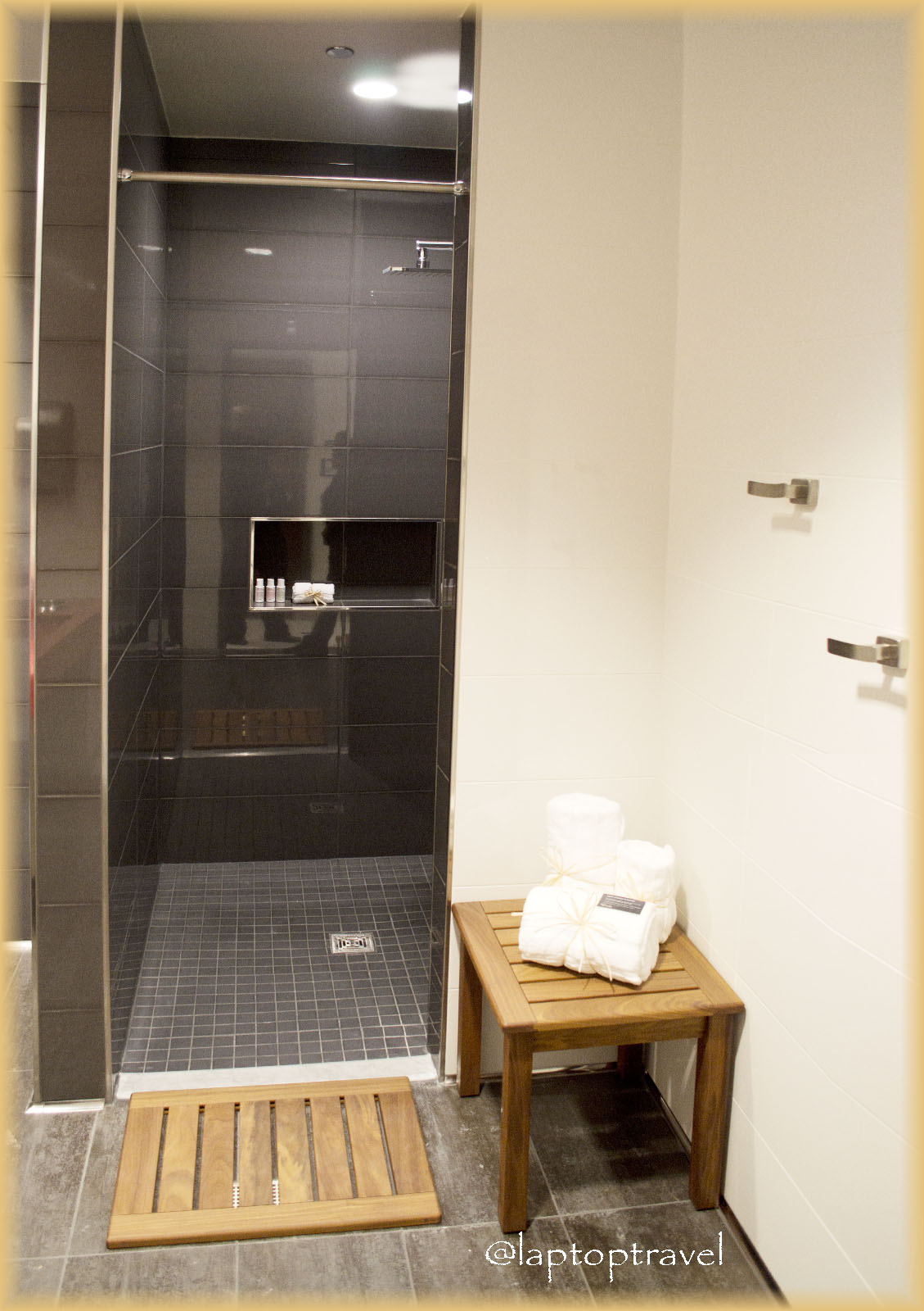 I did get a tour of the shower area. Funny, but the attendant asked if I wanted to actually take a shower. I would not want to waste a minute of taking in the new club during it’s private premiere, so I passed. But next time, the six shower rooms are waiting.