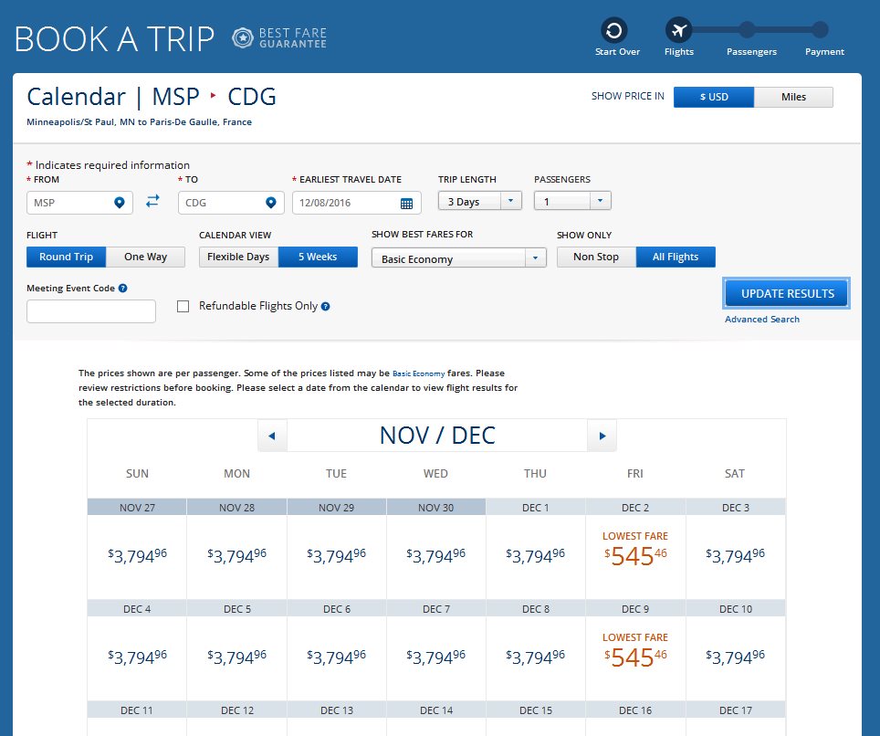 Very limited dates on this one but here is why I really like it. You can leave work just a little early on Friday and be home by Sunday night and get to enjoy about 24 hours in Paris. It is always fun to come in to work and when they ask you what you did this weekend say: “I had dinner in Paris” 🙂