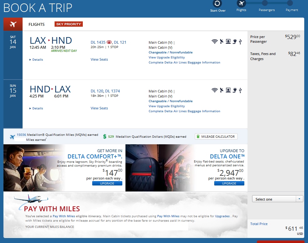 Clearly the weekday price is the best but since the weekend one is only ~4 CPM it is worth considering for more upgrades on the domestic legs to and from MSP. You simply book via the Multi city tool on Delta.com as seen above.