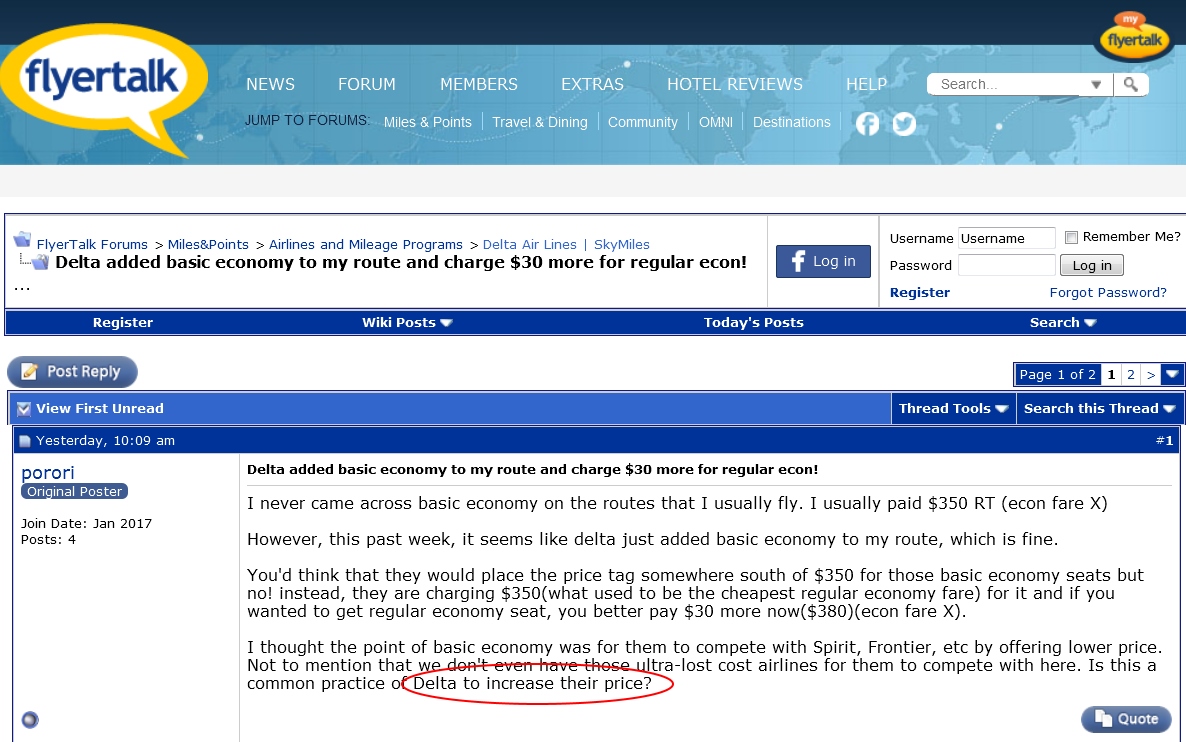 Notice at the top of the post @RenesPoints follower on twitter @MattBfive who is going to be one of those who will be “forced” to buy the evil E BASIC fares more and more during 2017. We know Delta is expanding these fares everywhere this year and not just in certain markets as in the past. Make no bones about it, these fares are not to compete against the low cost other airlines and we have seen folks who track fares on FlyerTalk gripe that E BASIC fares now in place even cost MORE than the lowest no E BASIC fares were before. Again, I love this (for me not for them).