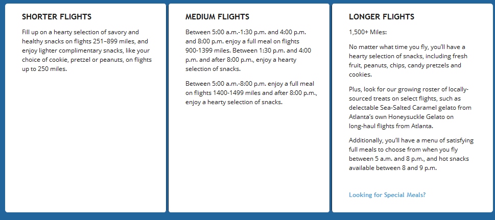 Next, beyond the implementation issues, we still have the massive big hole that frustrates me to no end – that is, flights 900-1399 long from 1:30-4PM get nothing but a snack basket. But notice that @Delta even contradicts this a bit saying 1100+ mile flights get a meal even in this dark time. Frustrating? You bet it is. It really is just wrong, I think, to exclude the 1:30-4PM on 900+ long flights. Plus there are so many flights that are 700-900 miles when a meal would be nice, but that is another topic for another day.