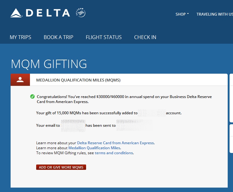 IMO this is one of the top reasons Delta is the only way to fly. We have a Diamond club group that shares MQM and other gifting opportunities among the group as needed. For example, we’ve gifted MQM to one member to get her to Platinum in time to select RUC and use on an upcoming flight. She would have gotten there but not before ticket purchase time. Another earns enough reserve card MQMs to be Platinum every year or if he stock piles his MQM via gifting he can be a Diamond every other year – which he prefers. In other words, the Delta AMEX relationship rocks if you know how to maximize with your relationships.