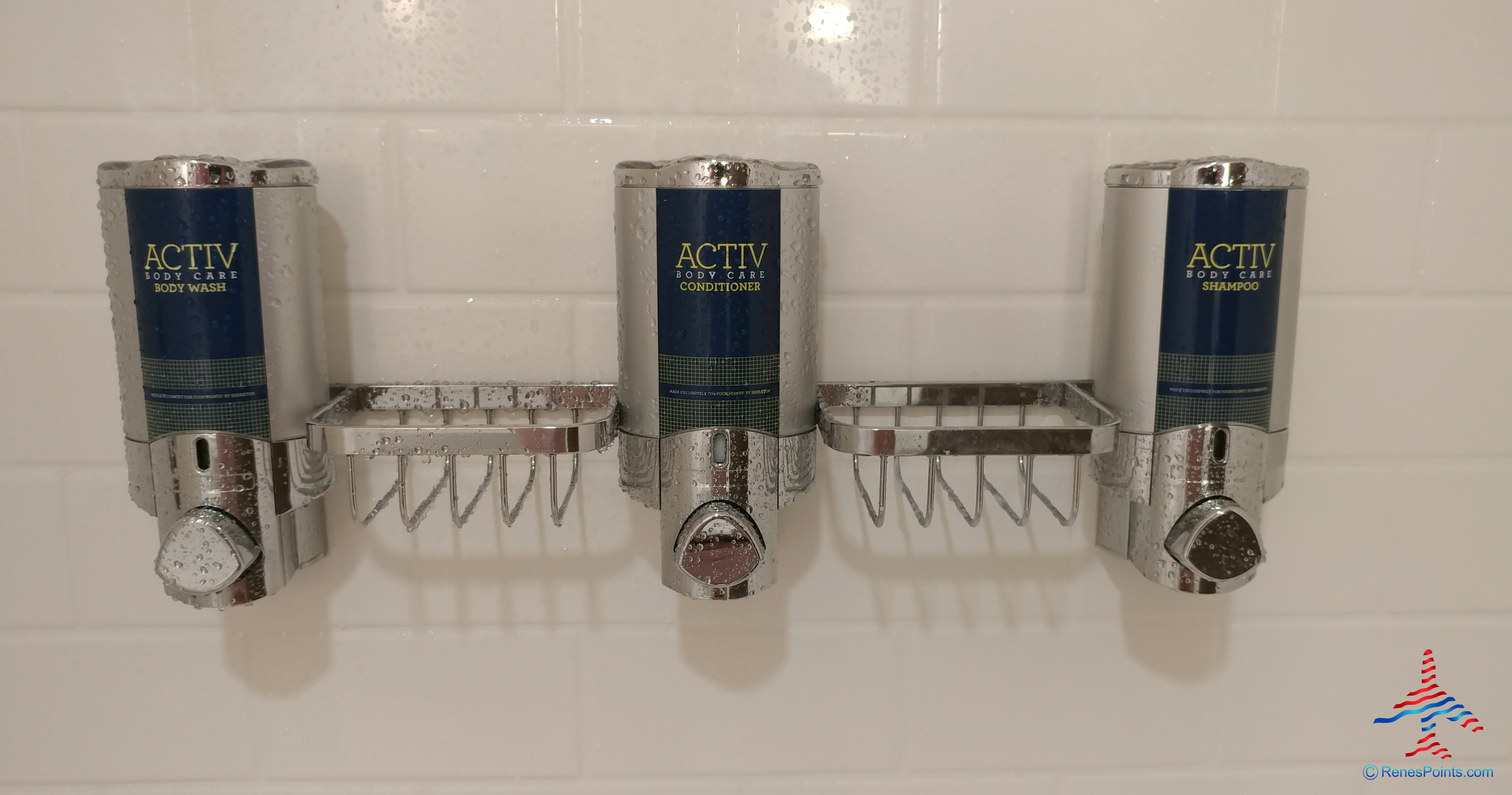 Anyway, the one thing it seems all Sheraton Four Points have installed in their showers is a combo liquid soap, shampoo and conditioner. While this seems like a good idea to save from having to provide as many mini bottles of each, the location in the middle of the wall is just so frustrating.
