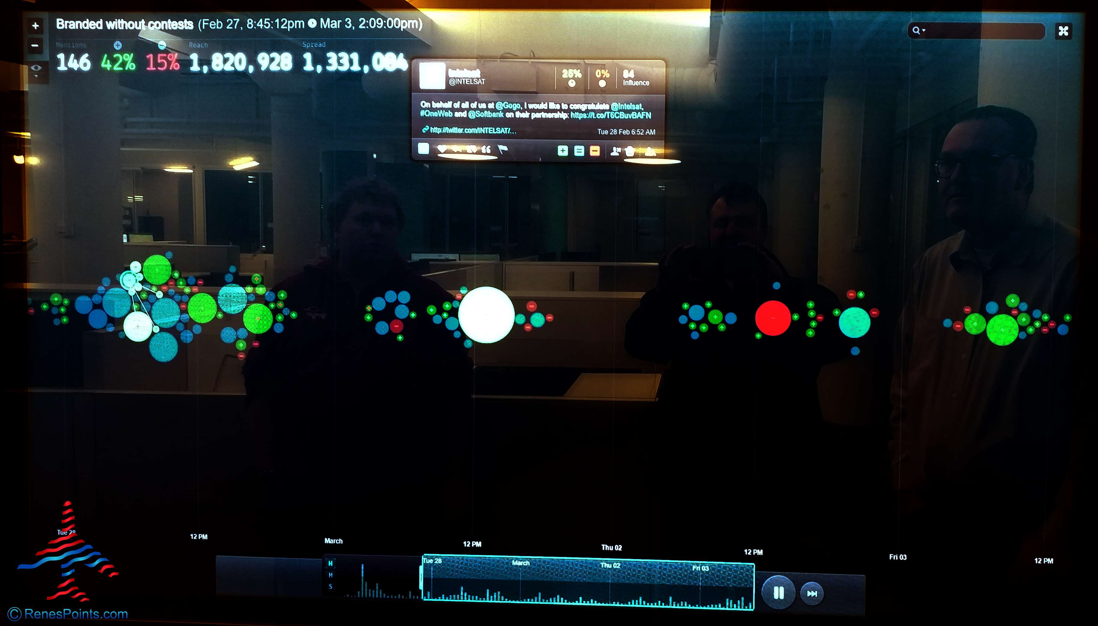 But one thing I did not cover in the post was a shot of the monitor you see above – that is, the live real-time tracking of the social interaction with Gogo. Just so interesting to me. Here is what the bits you are seeing represents: