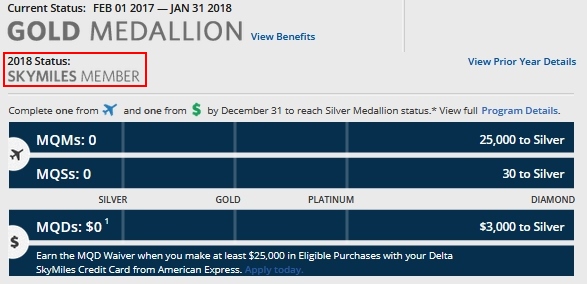 Next up is why I do so much of what I do with Delta. I like testing and learning and seeing what works and what does not and proving or disproving whatever. It will be fun to go from ZERO to Diamond as fast as possible. Sure, she will have Gold Medallion® status during January of 2018 but again, that is only the status, the points will all be from scratch on 1JAN18. My estimates are that by the end of March she will have the 125,000 MQMs (and be MQD exempt as well).