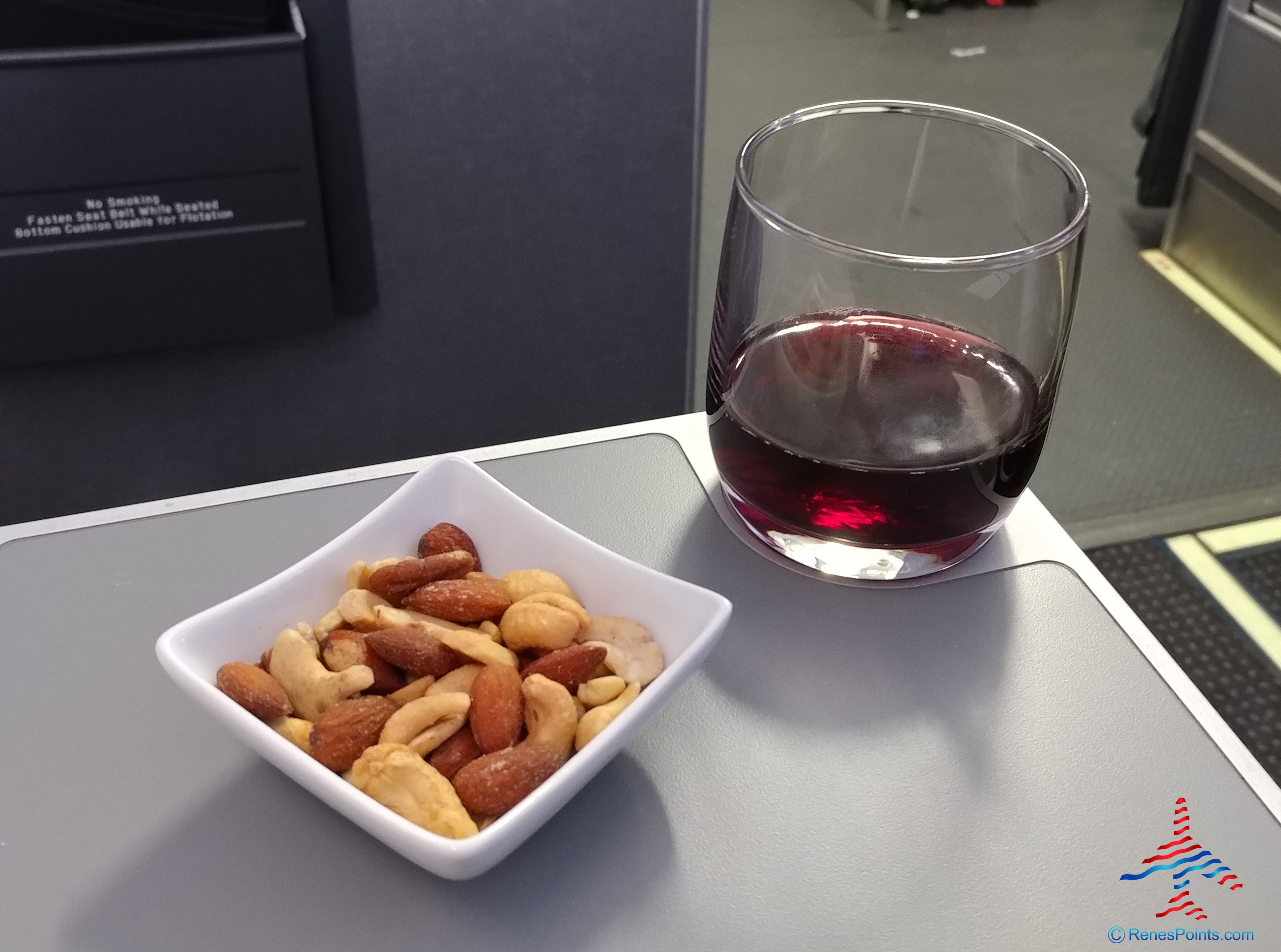 Once up in the air nuts and wine was a nice starter course. Sure we get snack basket lite in first class (where there is a meal vs. no meal full snack basket) on Delta but this was a nice touch. Call me impressed.