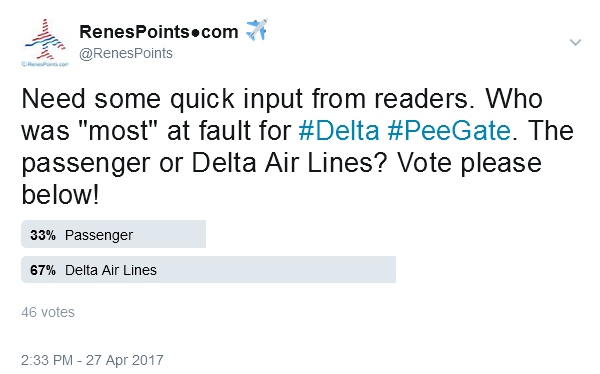 It seems since there were no police (or airport security people) coming on-board and beating up the Delta passenger last week that the paying customer who had to pee during a 30 minute taxi, and then was kicked off the flight, it is not getting the same press coverage as all the other events recently. Who knows, maybe folks are just used to the airlines treating us this badly nowadays?