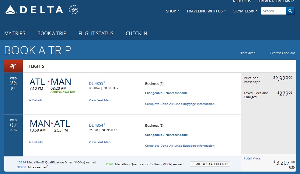 You would earn as a Diamond 32,208 SkyMiles (if you credited to Delta, that is) worth at least 1 cent each thus $323 back in value (plus a ton of elite MQMs). Guess what, if you do the math, this means buying the ticket is cheaper than the “free” award. Thanks Delta!