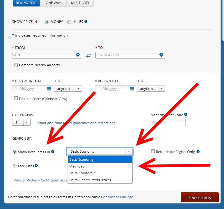 Also, unlike Delta, it is most times not possible to just check a box or drop down and tell the site you want to search for all fares other than E BASIC fares and this can result in lots of lost time as you hunt and peck for flights and choices that are at least “LUTVX” fares (the lowest Delta fare classes above E BASIC).