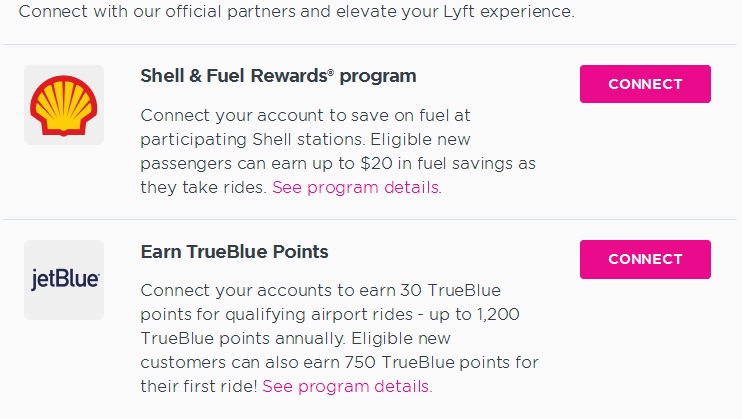 While you are choosing if you want to change the permissions you may consider going the other way (if you are happy sharing data with Shell or Jet Blue that is) and earn these program points in combination with your Lyft rides.