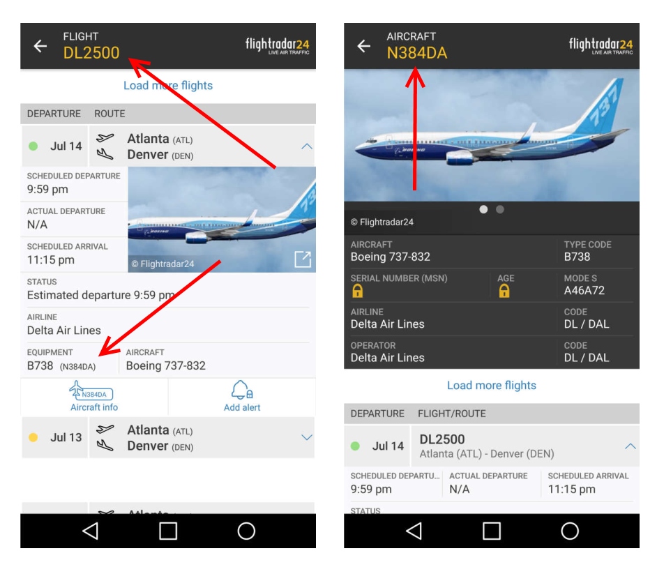 First off either go to FlightRadar24.com or install the FlightRadar24 app on your phone and then search for the flight number you are looking for i.e. the Delta flight number. I have taken as an example DL2500 inside the app. What we are looking for is the registration number for the airframe we will be on.