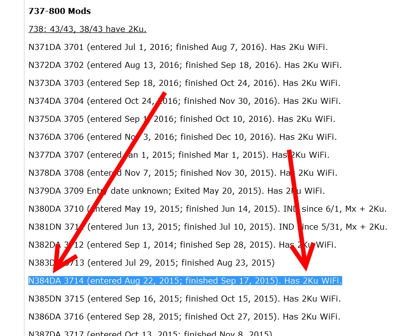Then pull up this page on FlyerTalk and search the page from a FlyerTalker who maintains a list for the airframe we will be on and see if 2Ku is listed for that specific jet.