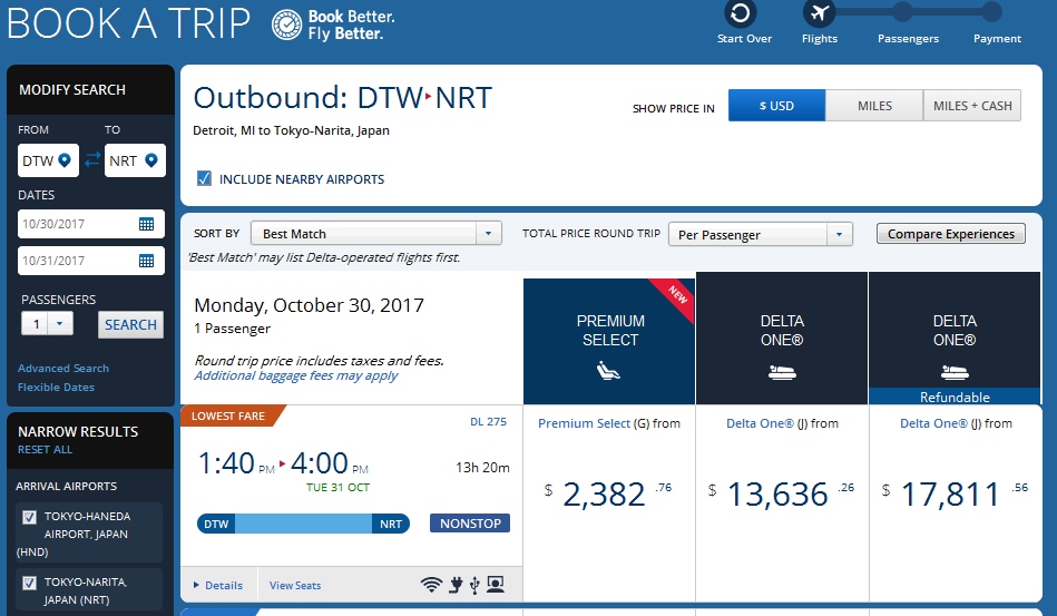 Yep. The flight from Detroit to Japan currently only has 2 of the seats in the “4” seat middle section sold. What about the return flight from Japan?