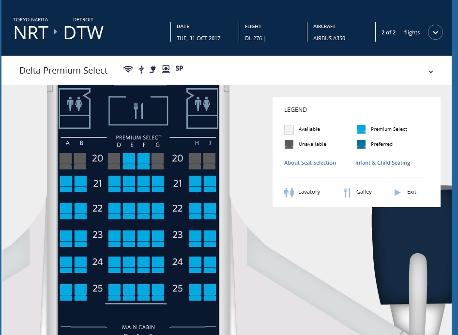 This will sadly discourage me from flying the A350 altogether, unless I’m in DeltaOne. The 767 and the A330 will offer more comfortable experience in comfort+ (free) that Premium Select on the A350.