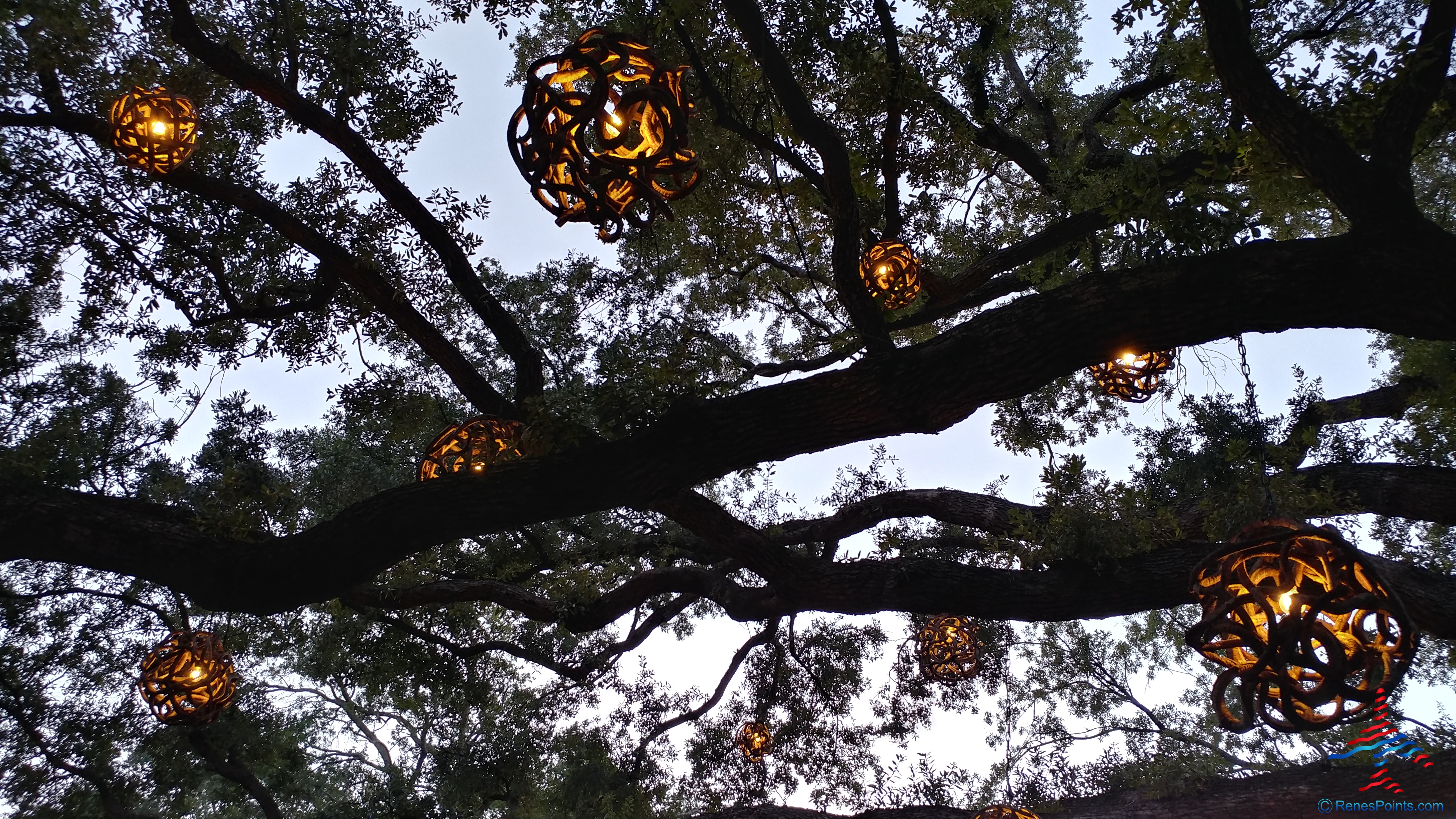 You have a choice of inside seating with air conditioning or a very pleasant outside area under a massive oak tree with some of the neatest outdoor lighting I have ever seen. Really special.