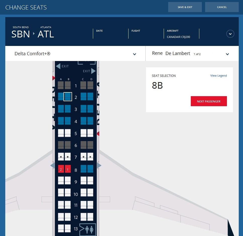 Again, keep in mind the Delta CRJ200 is an all coach seat jet. The Comfort+ seats are the exact same seat as every other seat on the jet (just with much less leg room and no overhead space). The Diamond rep was empathetic but told me there was nothing she could do as the computers (thank you Delta IT) will not let her move us out of the worst seat on the jet unless I am willing to pay a total of 80,000 more SkyMiles to move 8 rows back.