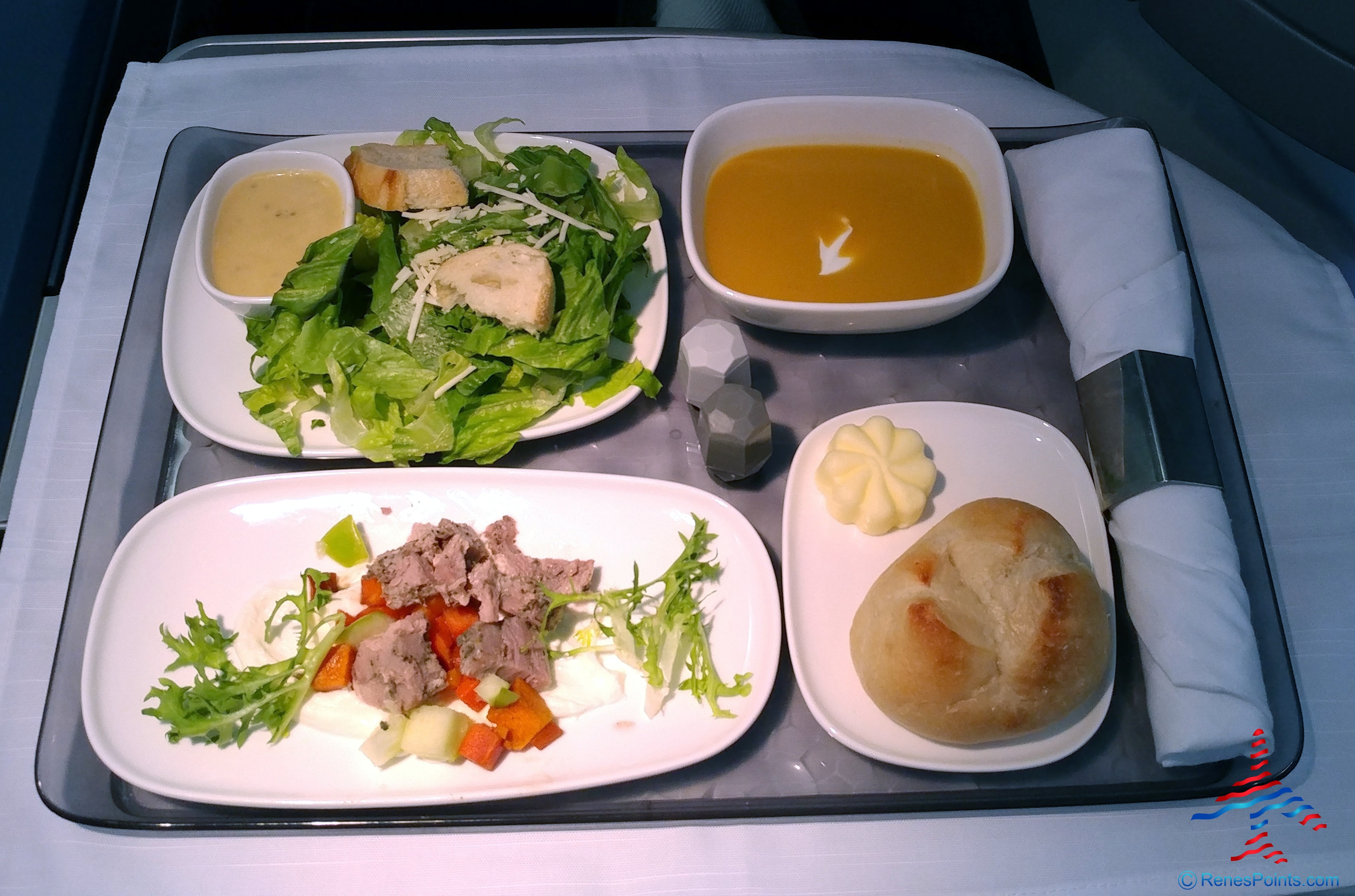 Much like my recent 777 Delta One flight to Amsterdam, the appetizer was just OK. It is time for Delta to revamp this course. It used to be something special including much better soups.