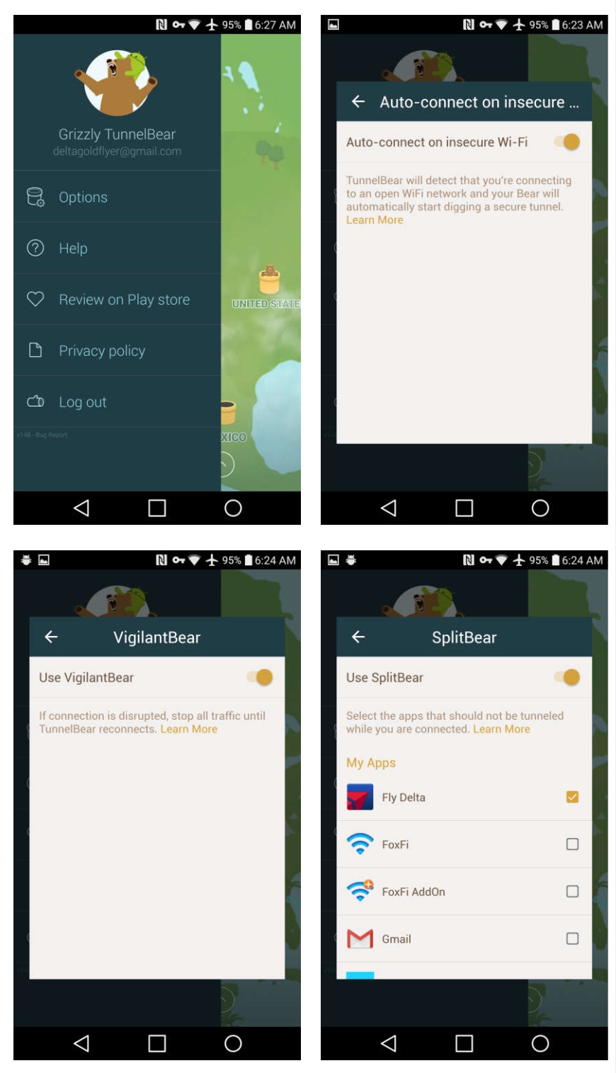 The idea that some hotel or wherever I am connected could be capturing my data makes my skin crawl. Thus I always, always, always use my Tunnel Bear VPN when on wifi. I would not dream of ever connecting without it (tip if you are doing this – I feel very sorry for you – I bet you run with scissors too?). Now there are times I have to shut it off like when I use my Fly Delta App or log on to Delta.dumb because while safety may be first with Delta, having my data safe clearly is not. Yep, Delta forces me to use an unsecured connection to access my flights – crazy right?