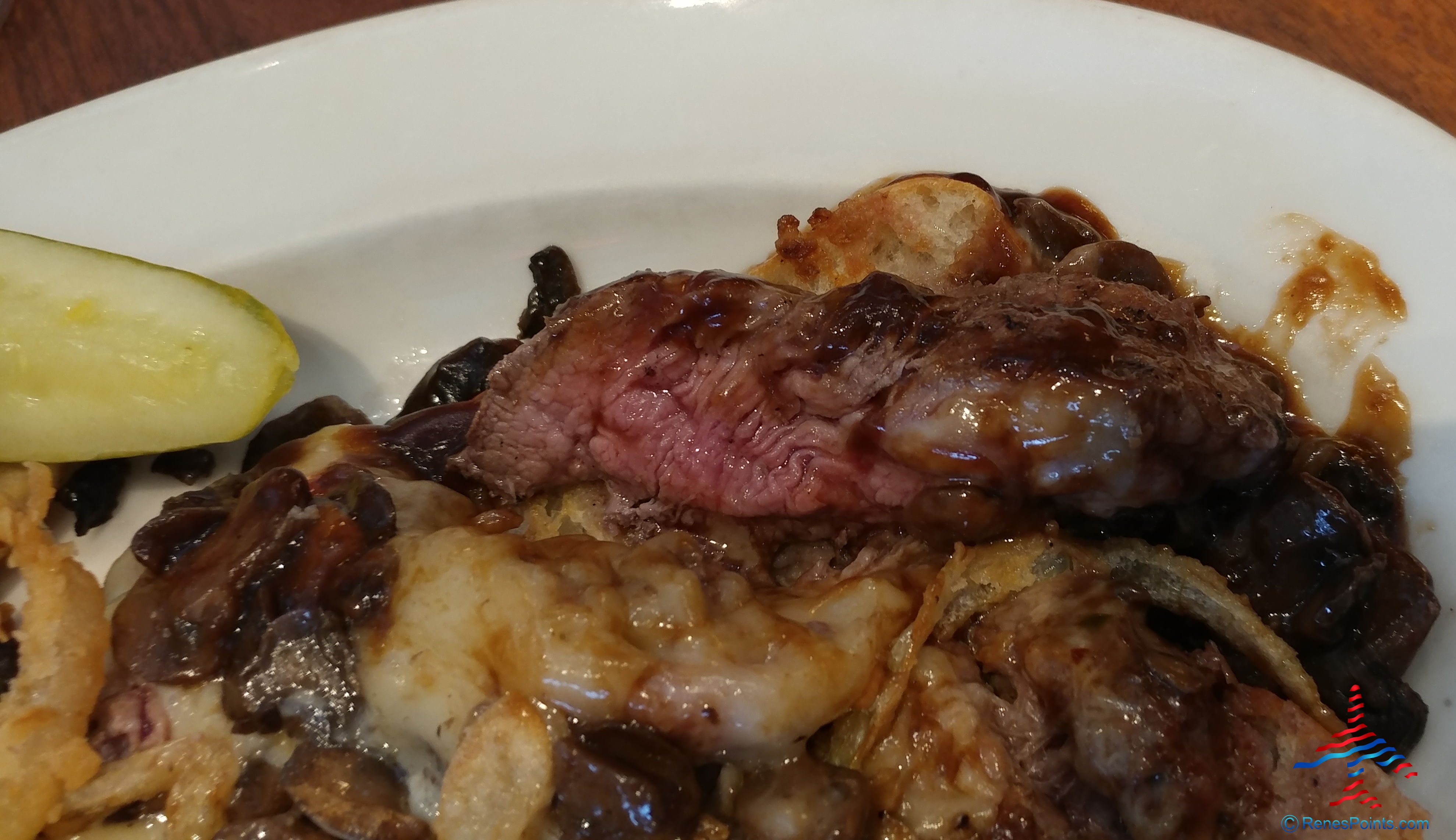 I was traveling with a fellow frequent flyer and ordered the steak sandwich. Often times when you think of a steak sandwich it is way over cooked, thin sliced meat that can be disappointing. What you see above was delicious and simply huge with tender cuts. I ate only the steak, mushrooms and onions and was completely full.