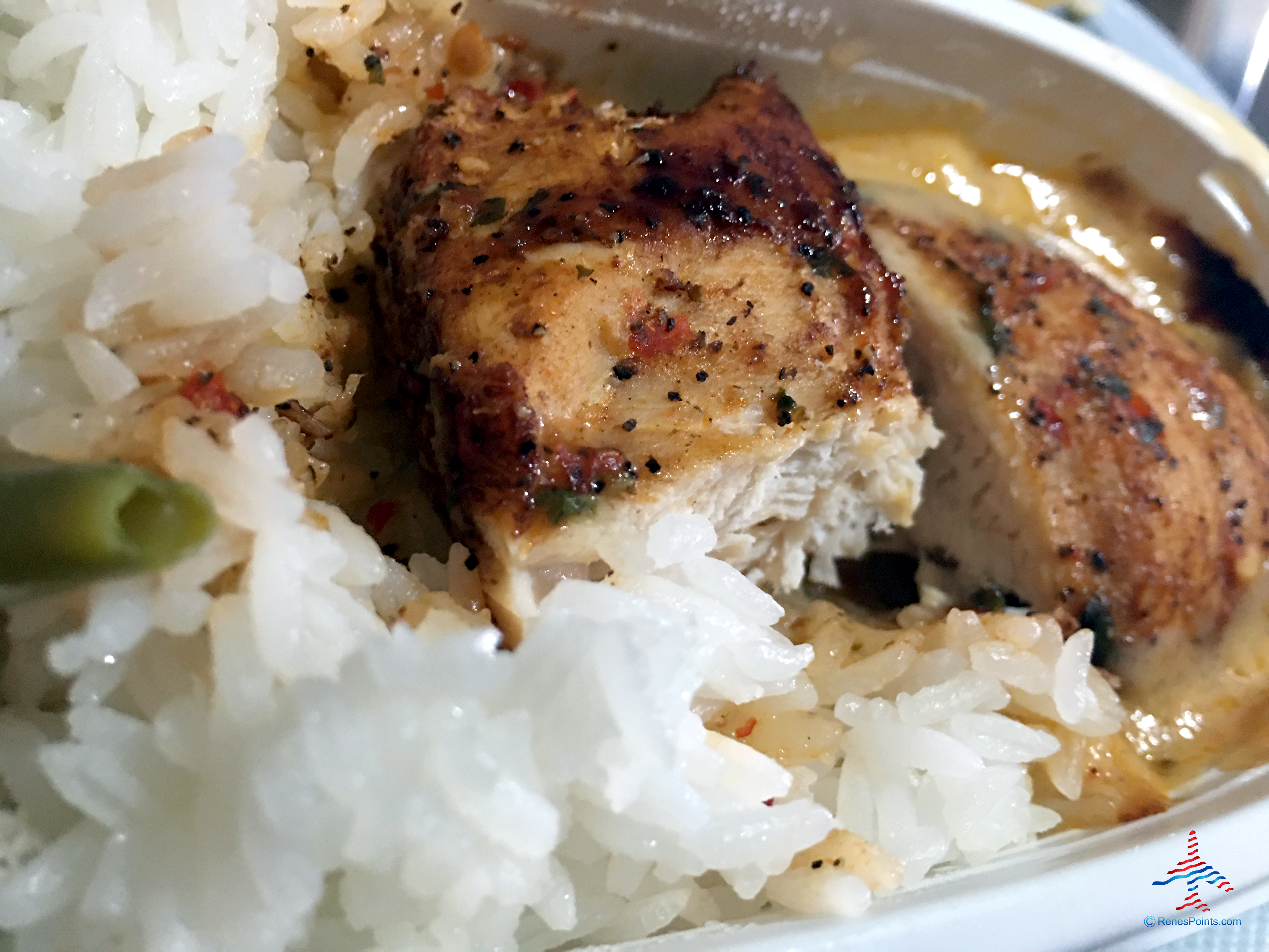 The meat was somewhat dry. The green beans weren’t particularly tasty; just sort of bland. The rice was good, though.