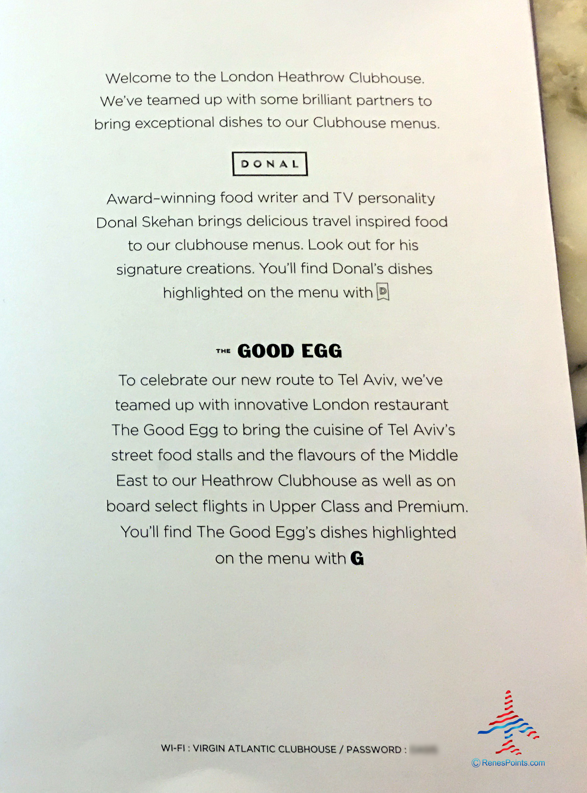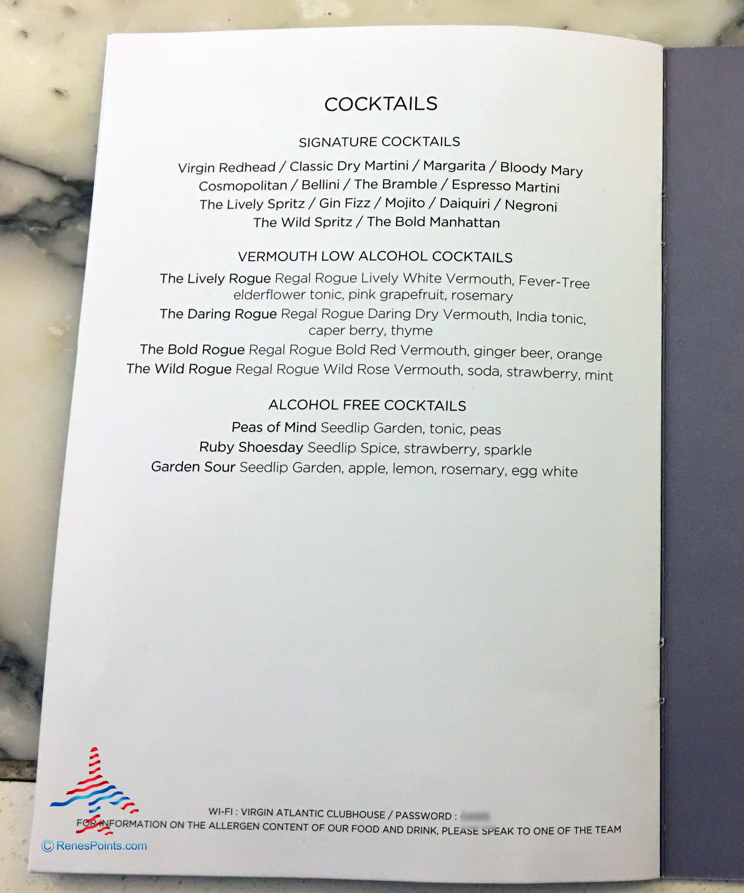 Food and Beverage at the Virgin Atlantic Clubhouse at LHR