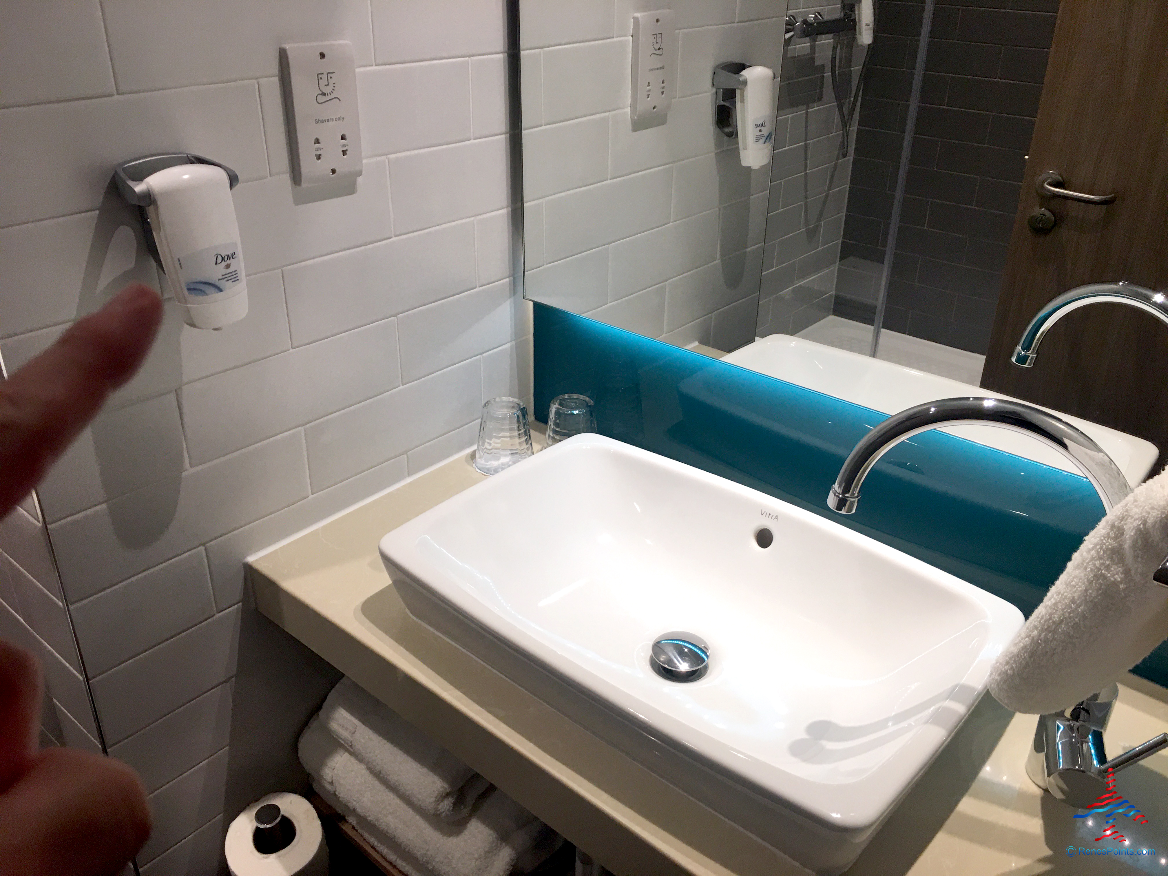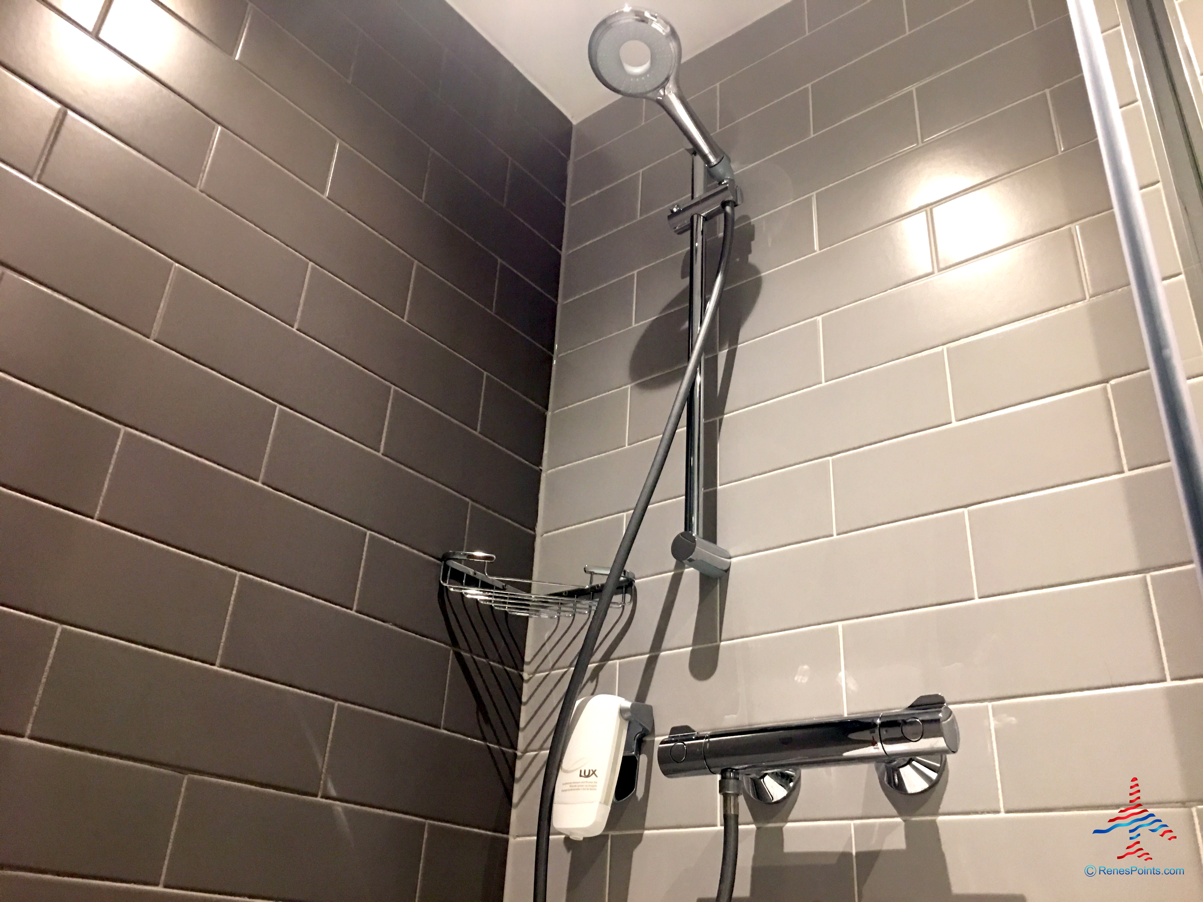 The bathroom has wall-mounted, refillable toiletries (ew). I’m glad I brought my own.