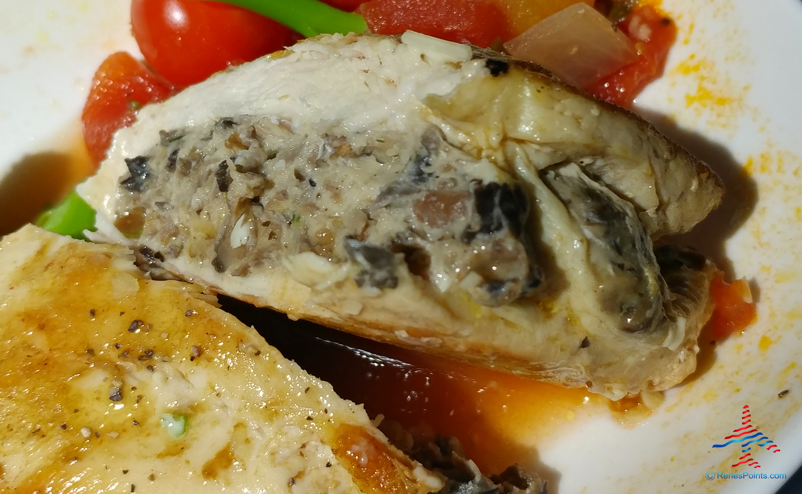 Being a Delta frequent flyer I have sampled just about every first class meal Delta offers. Most are quite good. For my flight from Detroit to Las Vegas I had two choices – either Salmon with rice or Mushroom stuffed Chicken. I am not a fan of Salmon so I chose the latter. How was it?