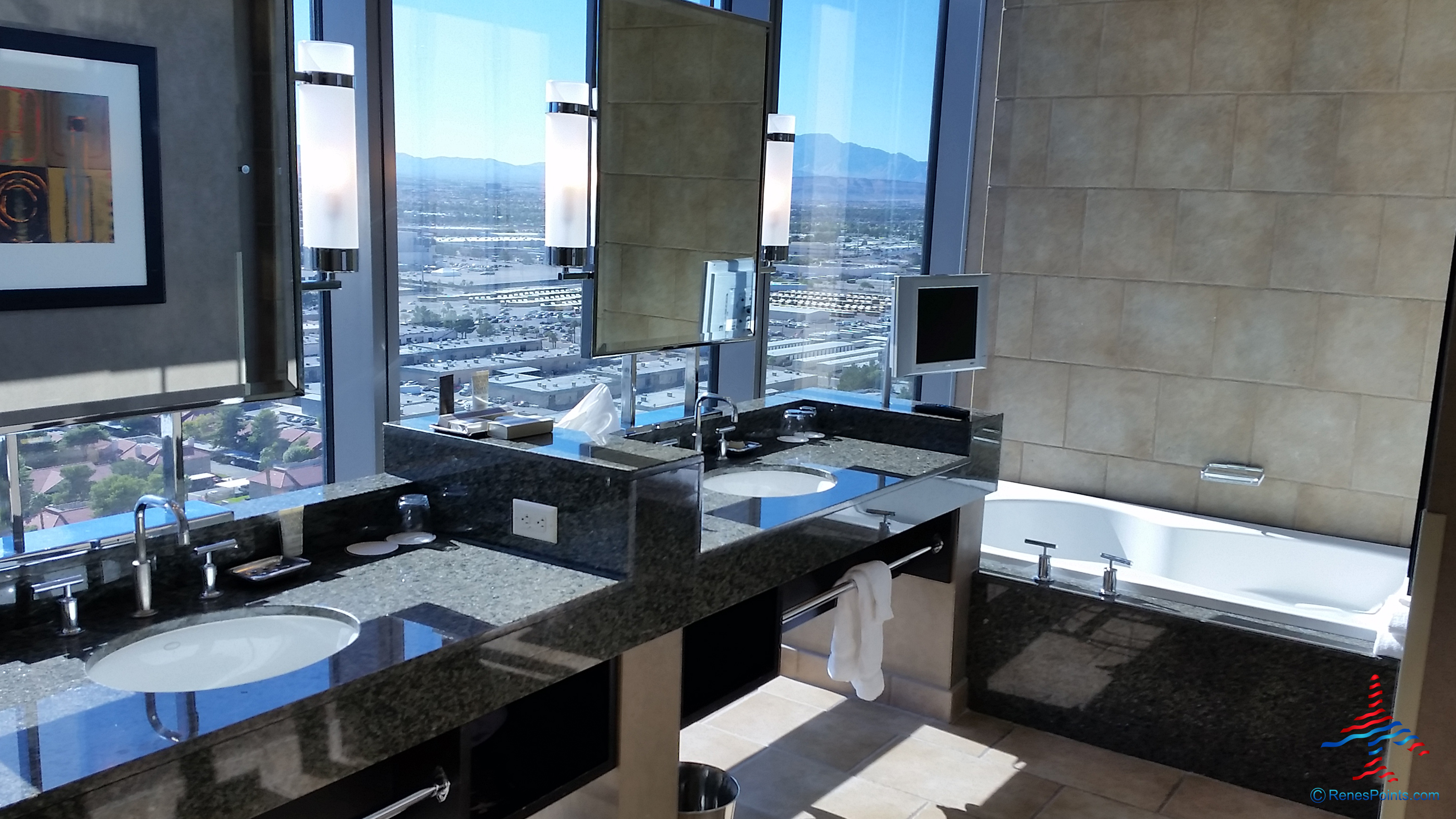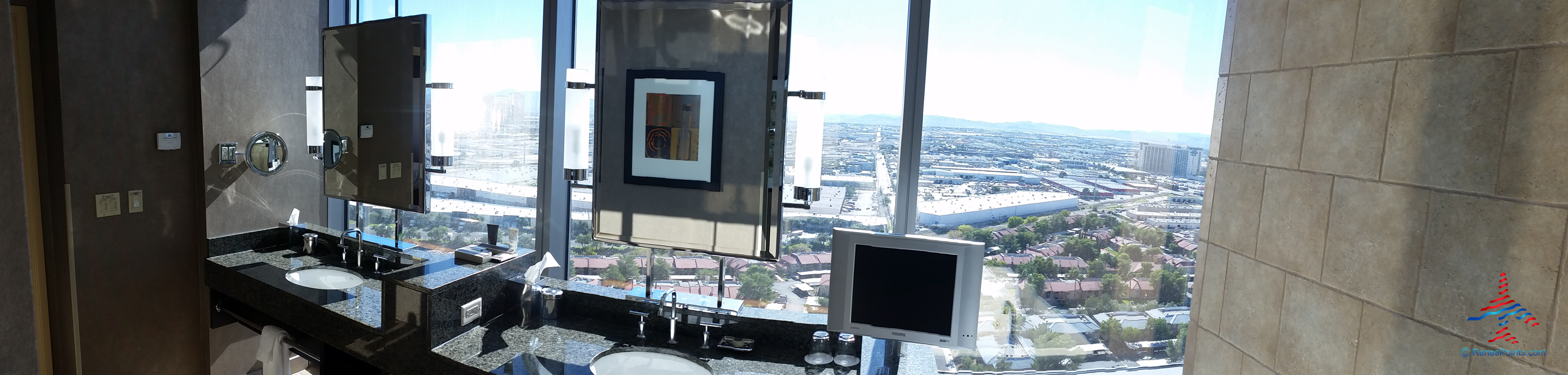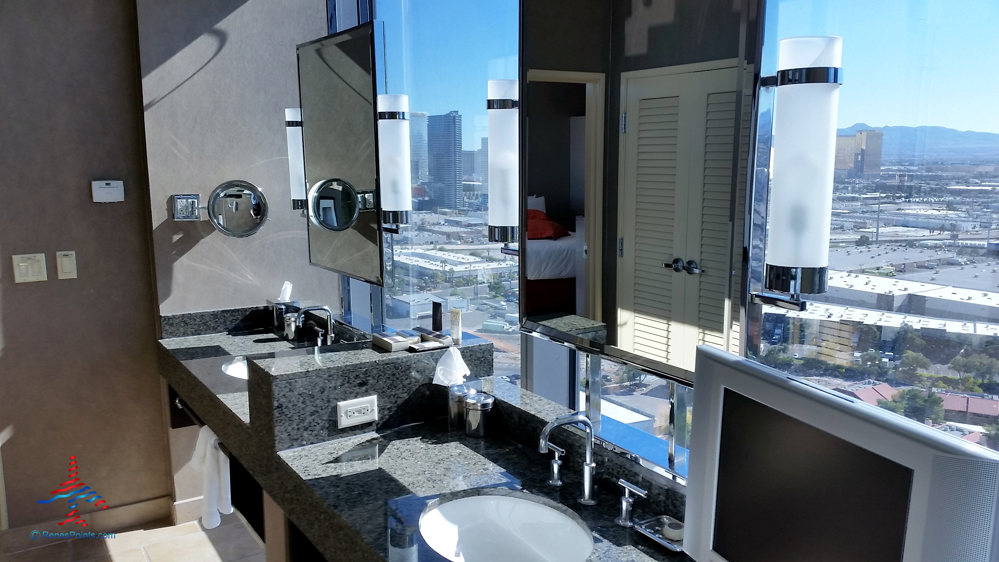 Its views (yes, the bathroom boasts expansive views of Las Vegas!) and spa-like design make the Salon Suite’s bathroom a place where you might find yourself spending, erm, more time than usual. Never in my life have I so much enjoyed washing my hands, brushing my teeth, and flossing.