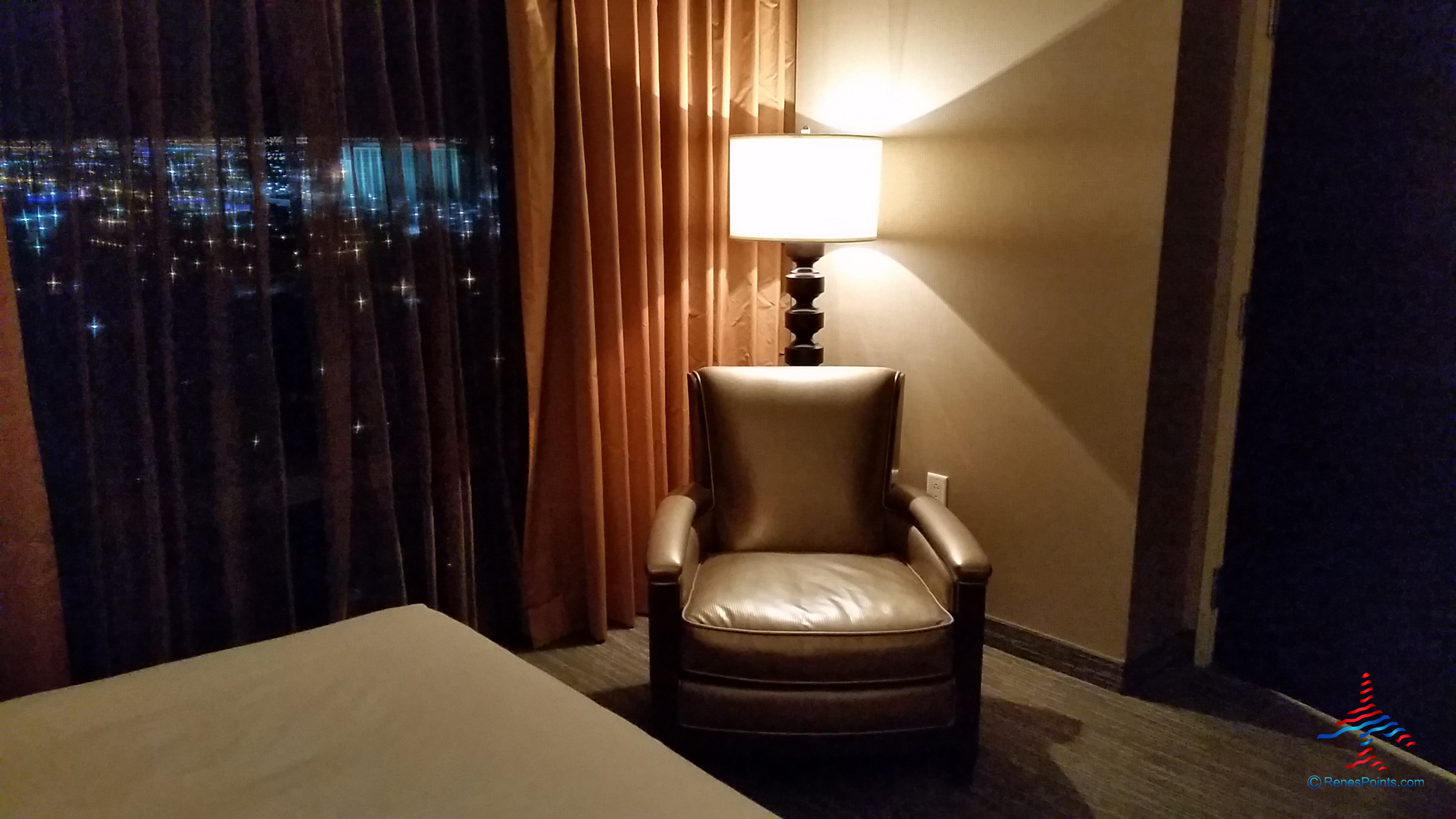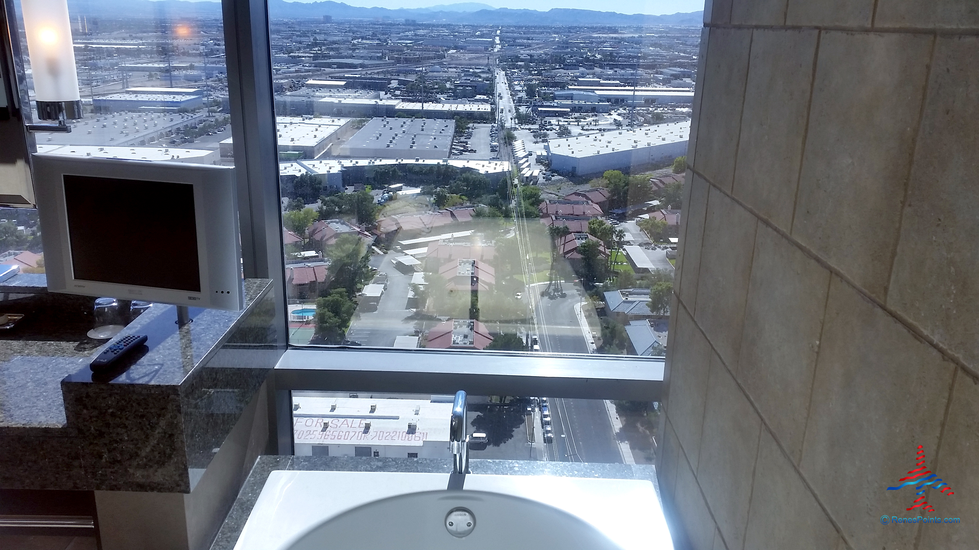 I love how the sheer curtains give the Vegas lights sort of a shimmering effect. There was also a flatscreen TV in the bedroom.