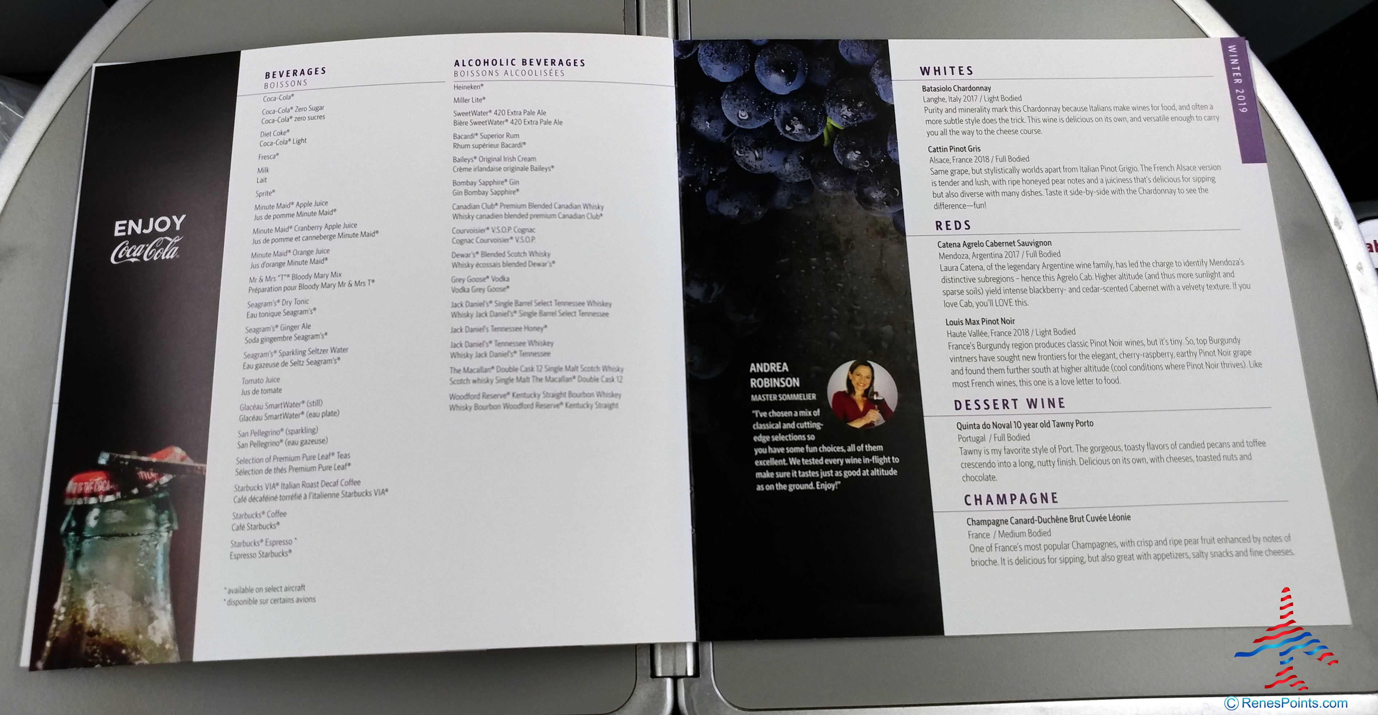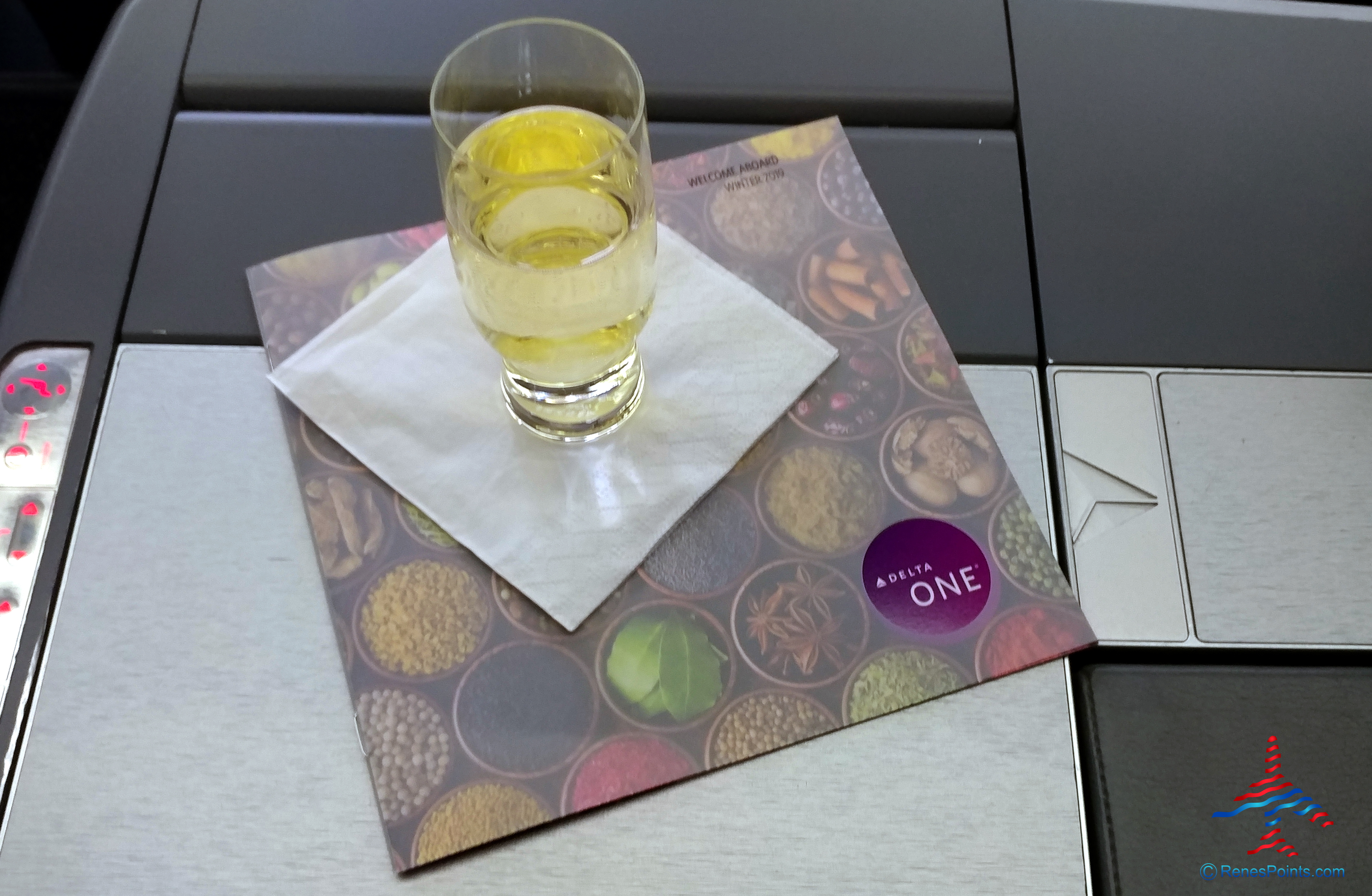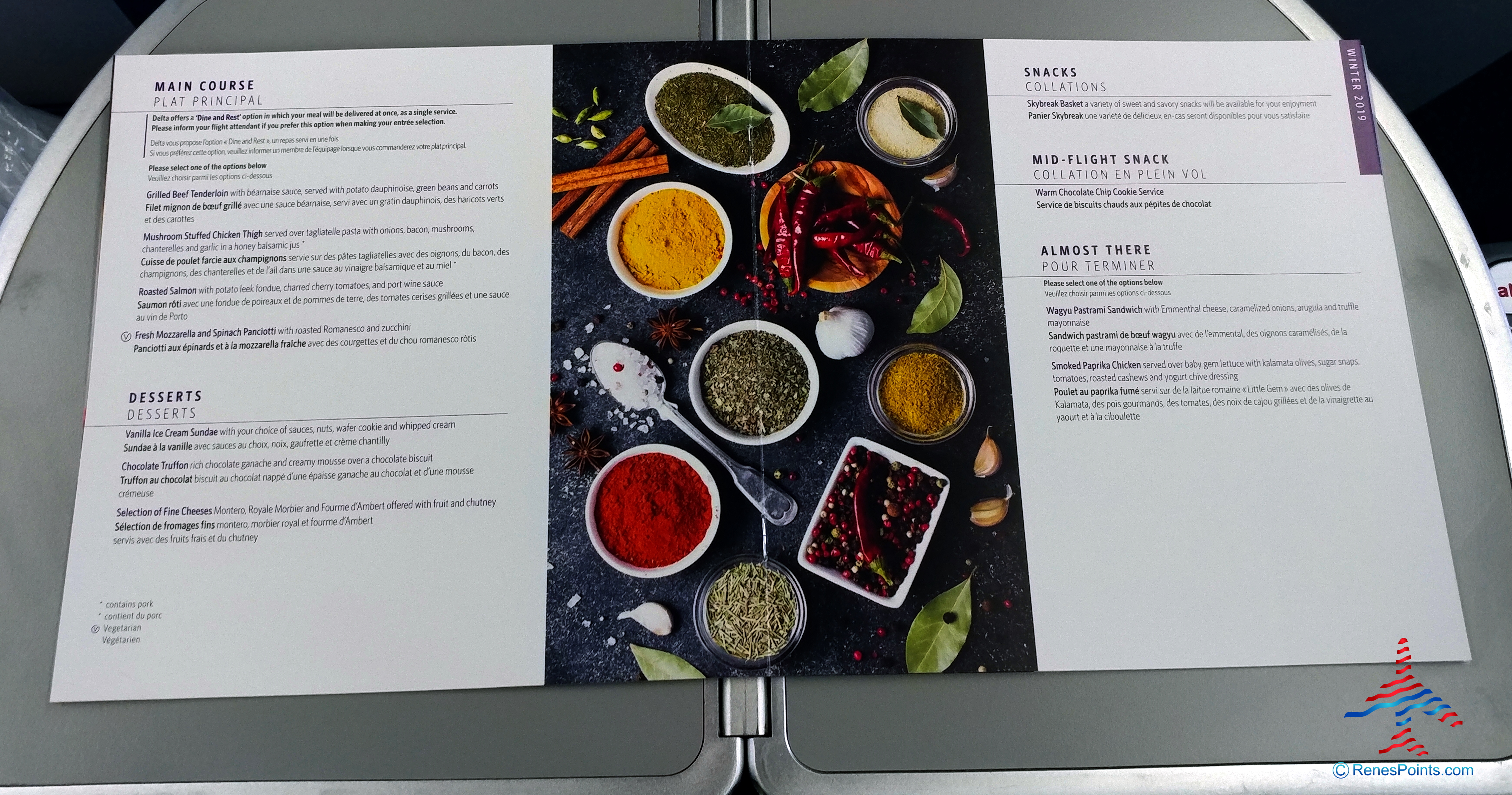 Delta, before takeoff, sends the head purser by with a menu and choice of OJ, a mimosa or sparkling wine. Here is what the choices were for this flight: