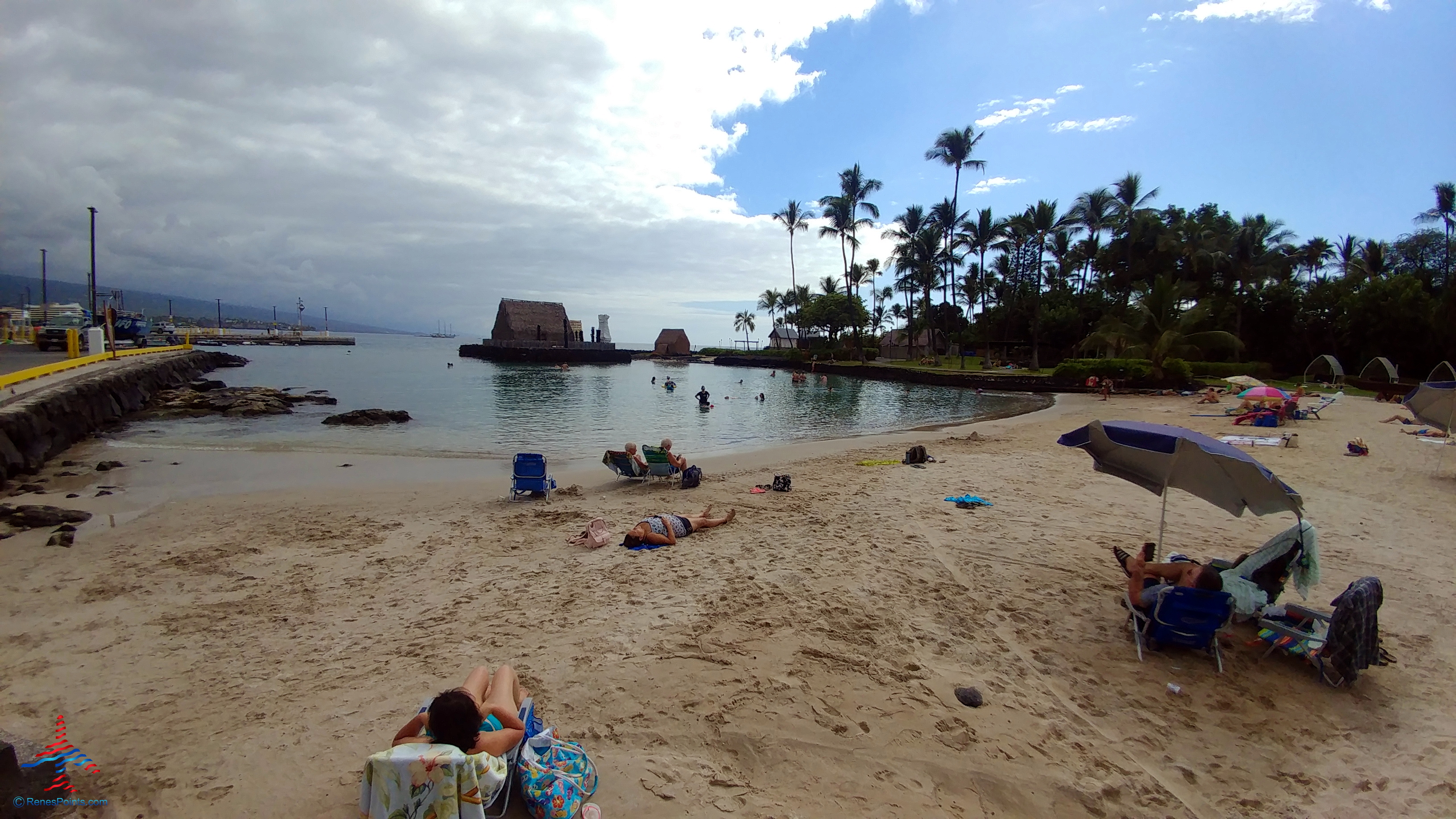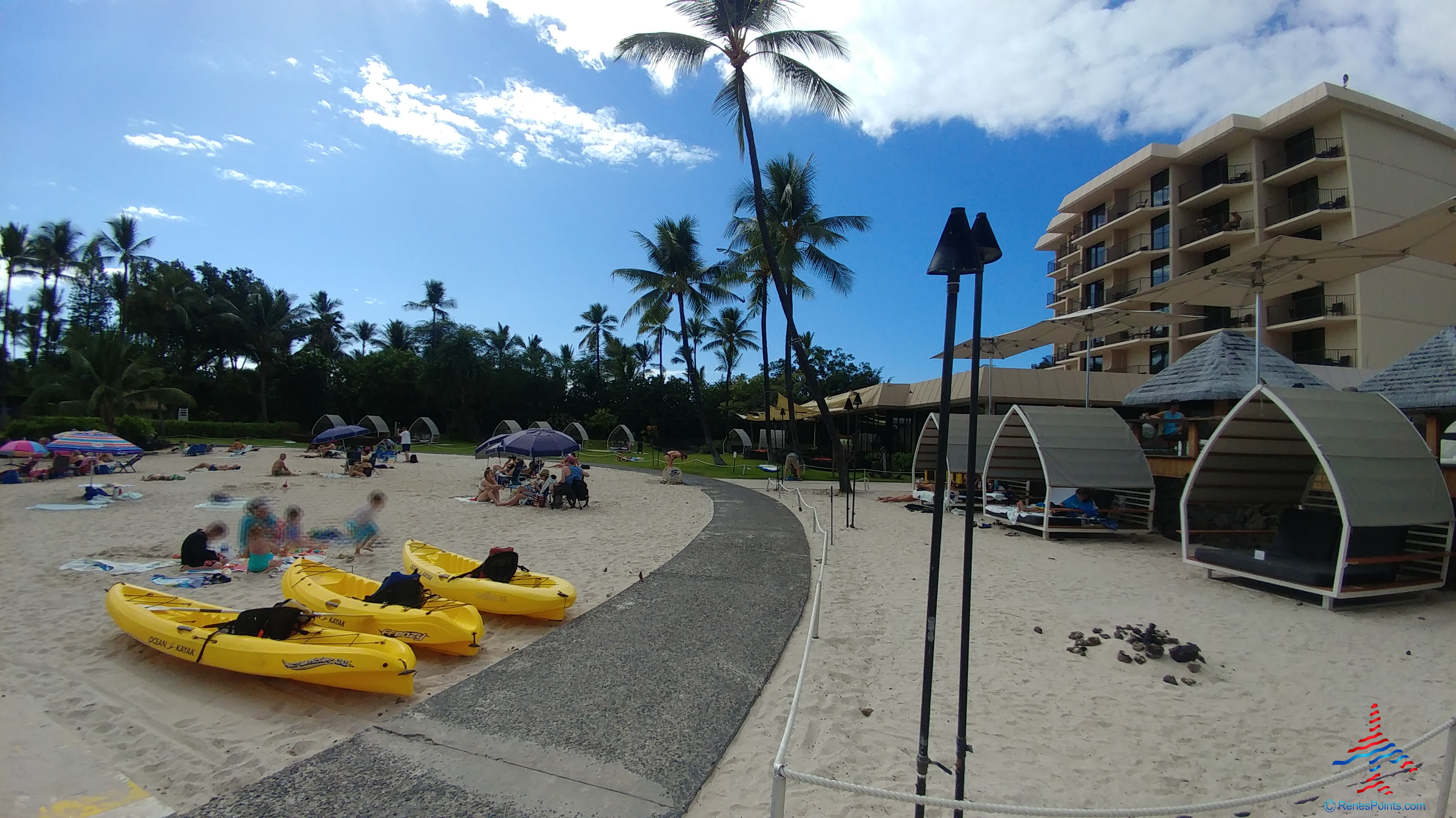 Our room really did not matter much as we were planning on spending most of our time in the sun (I mean it is Hawaii in January after all). The pool was nice. The chairs were trashed and if you look at the Trip Advisor comments about this hotel you will see a running theme that it is dated and needs a refresh and that was in the works (at least it was pre-COVID). The beach area is small but not bad. Take a look: