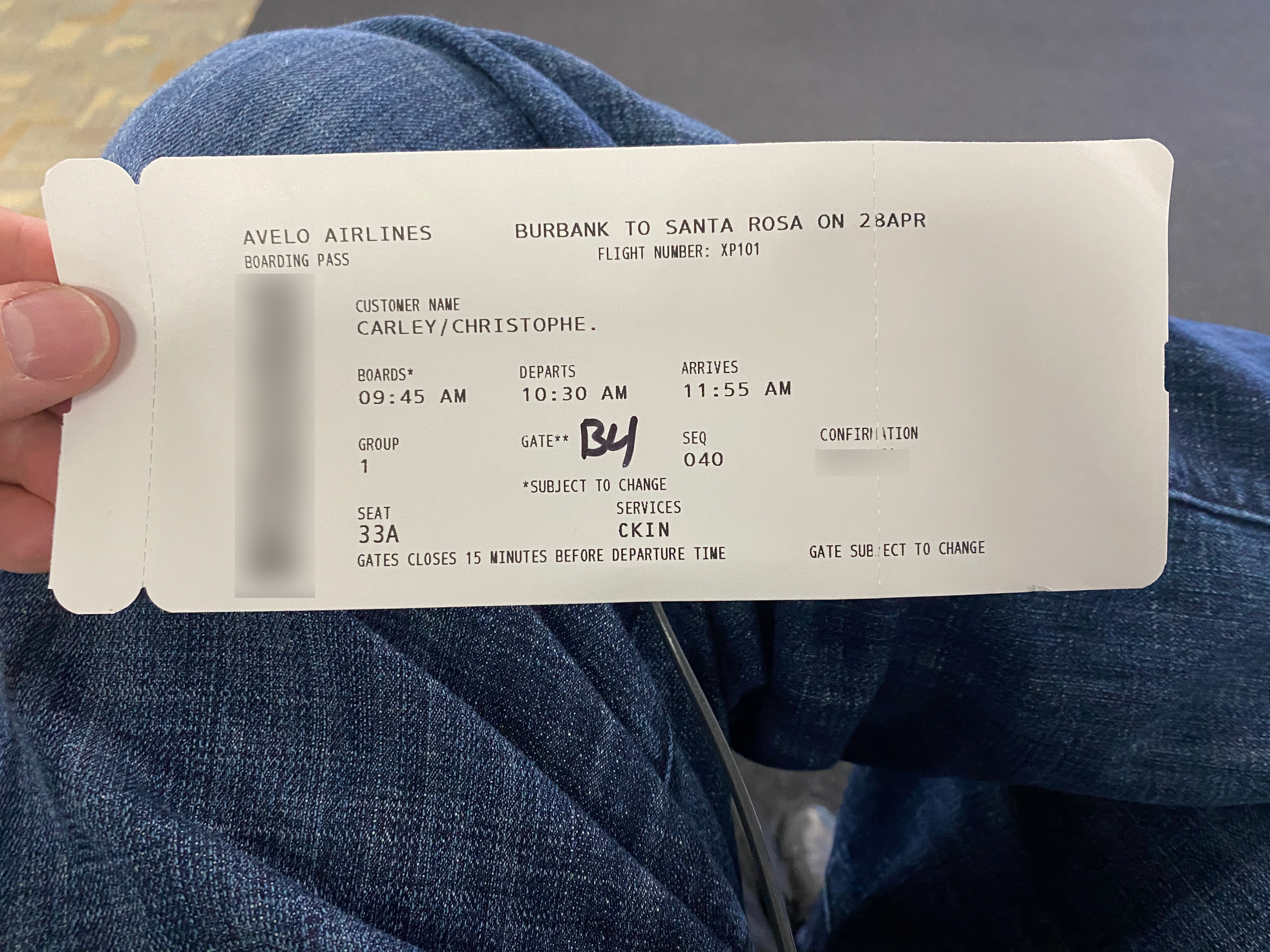 The lead flight attendant accidentally welcomed us aboard American flight 101 — and then quickly corrected herself. (Guess where she worked before joining Avelo? 😉 ) She received some good-natured teasing from the passengers. Then she told us we were going to Santa Barbara (Santa Rosa was our destination). When she was corrected, she said with a laugh, “Well, we’re flying past Santa Barbara!”