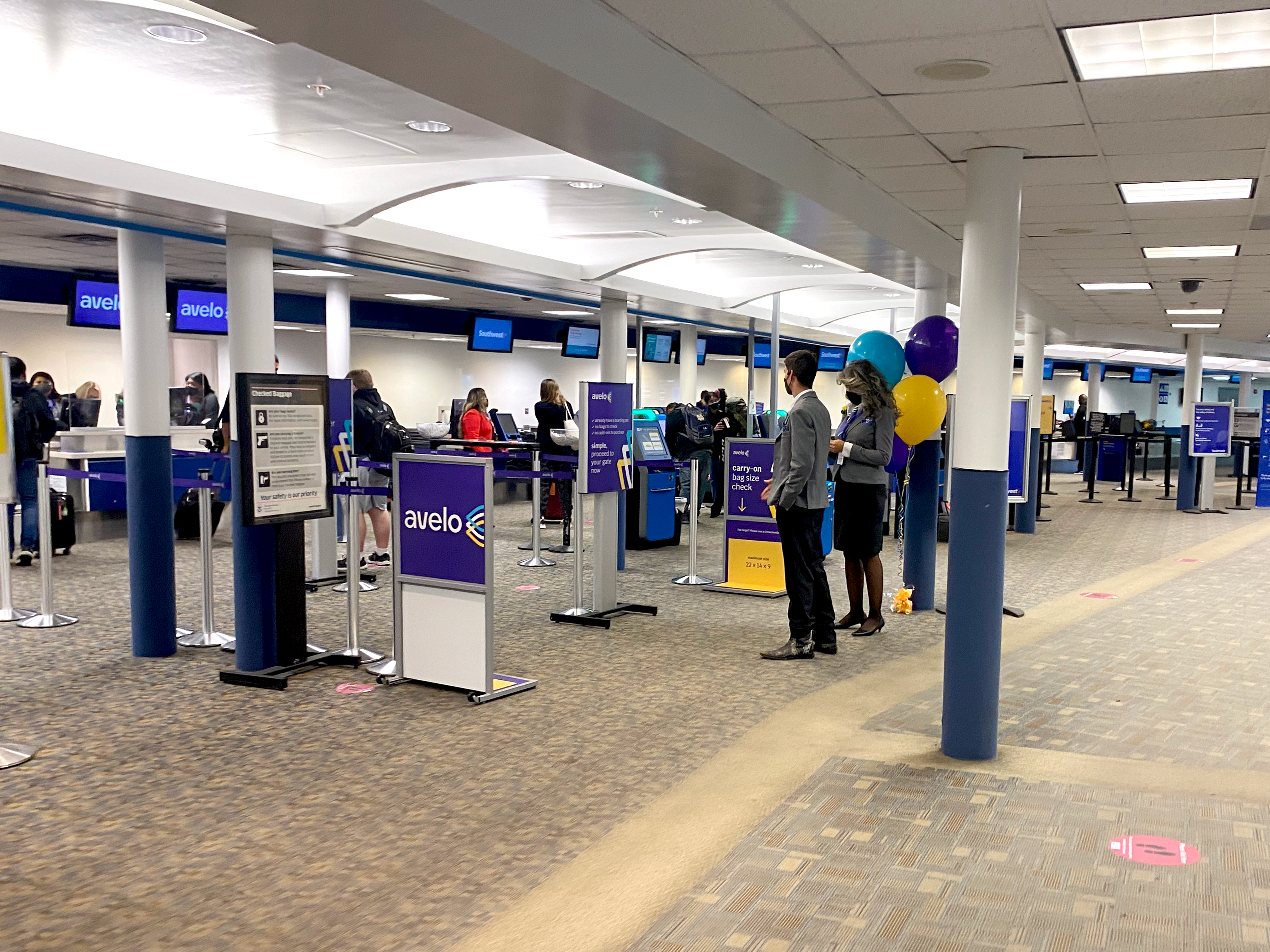 A step-and-repeat was available (between Terminals A and B) for anyone who wanted to snap pictures in front of Avelo branding.
