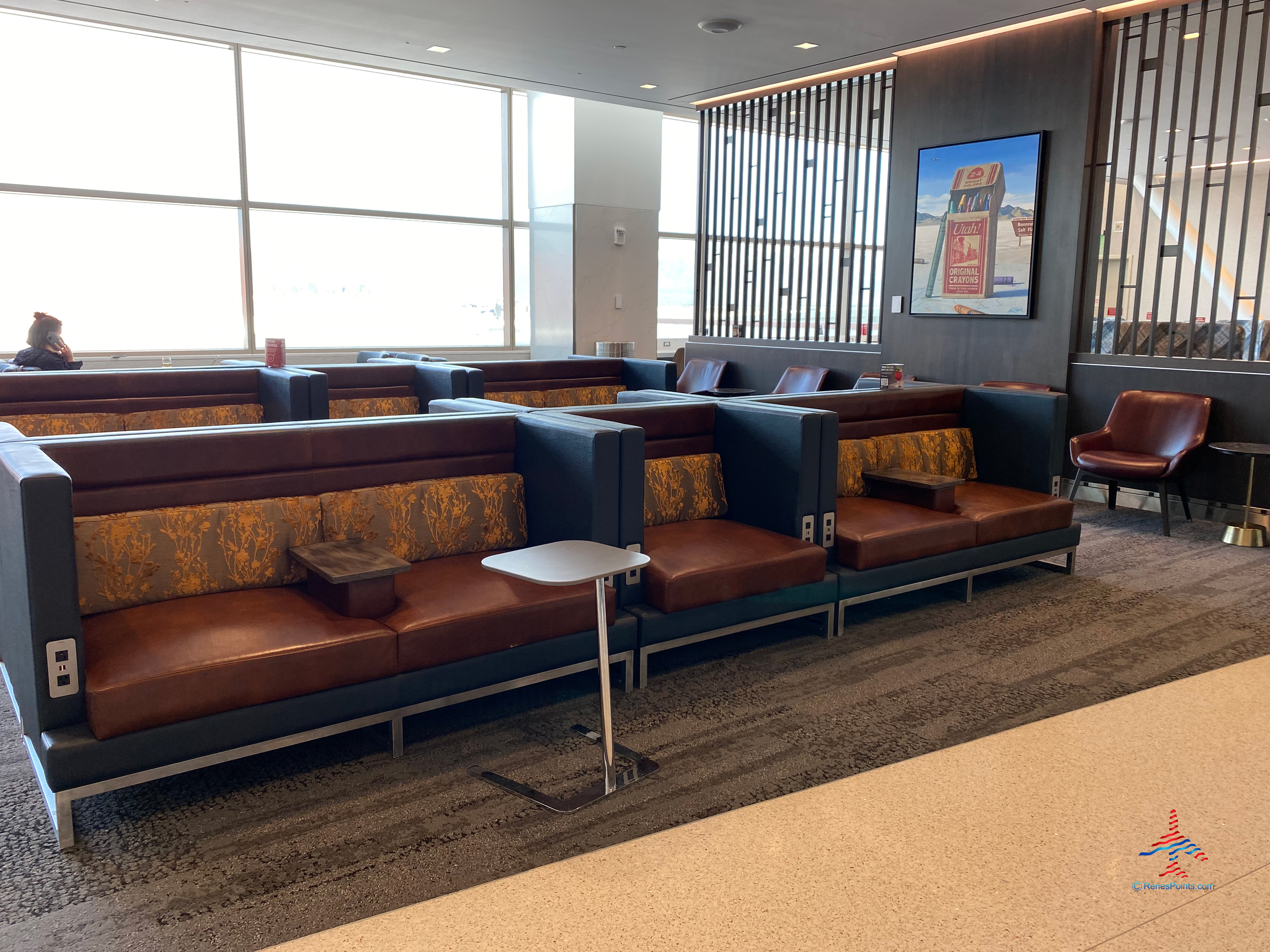 Delta offers plenty of seating options in the new club. Everything from lounge chairs, to cafe-style setups, to sofas, and much more.