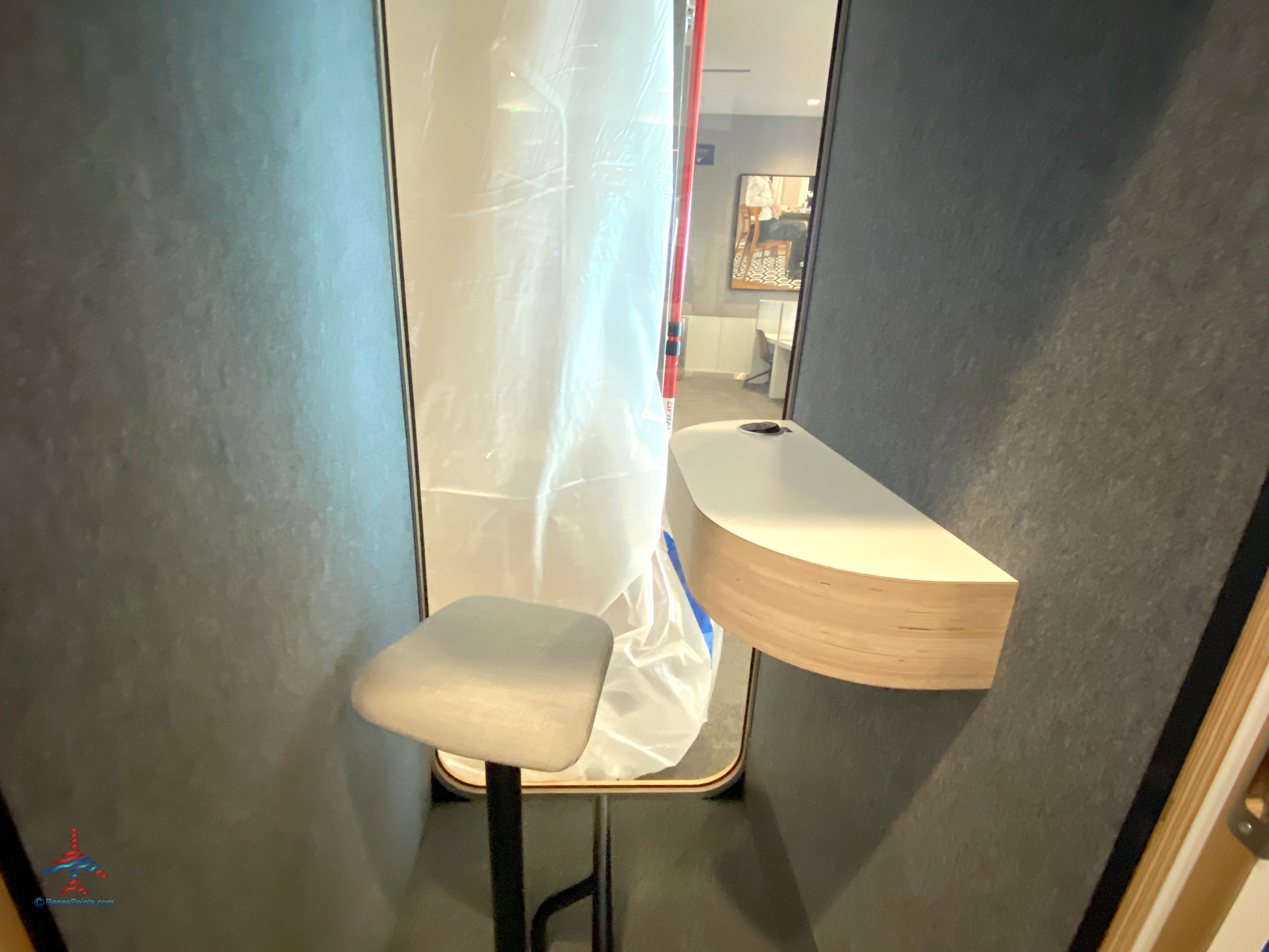 The phone booths feature USB-A, USB-C, and electrical outlets. So feel free to have your phone, FaceTime, or Zoom call in here!