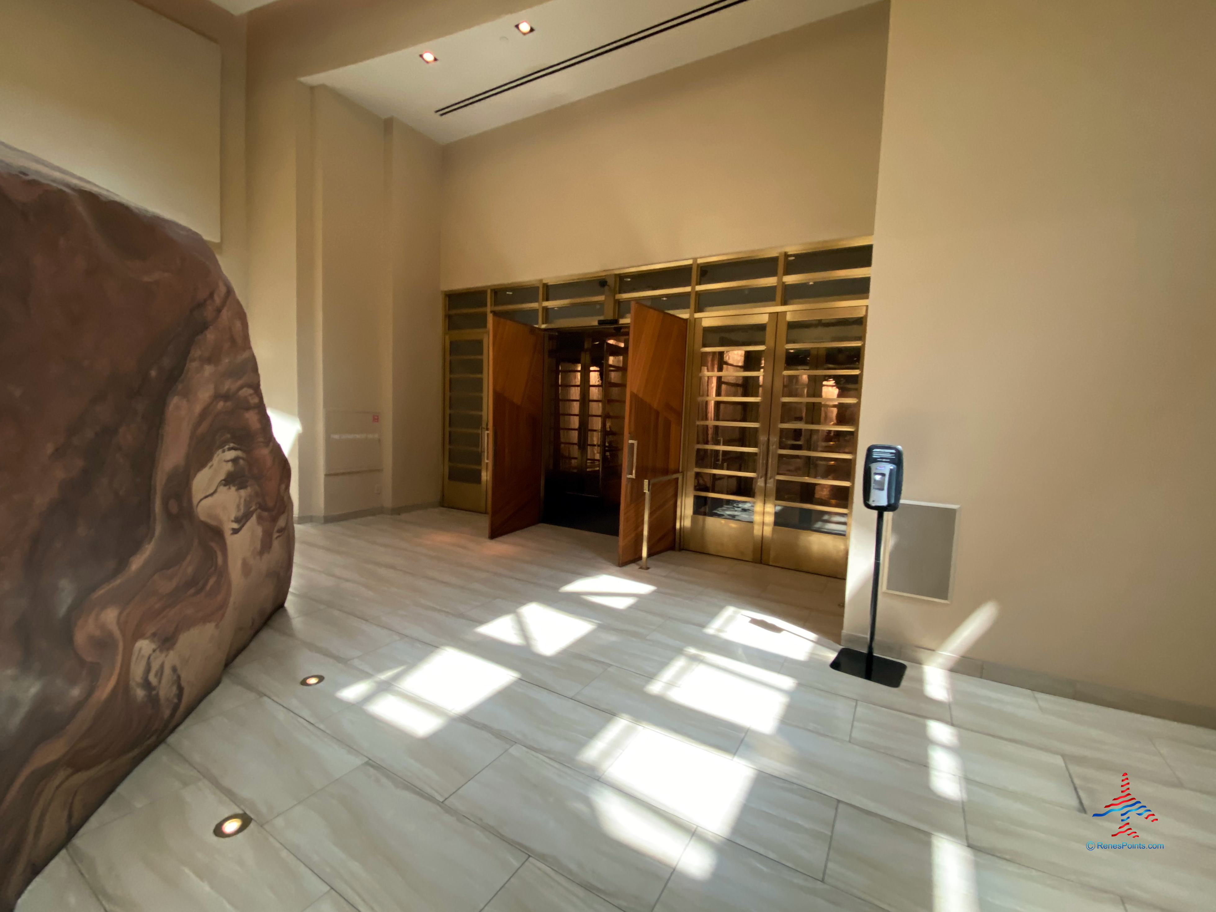 Proceed through those doors and you’ll be in the lobby.