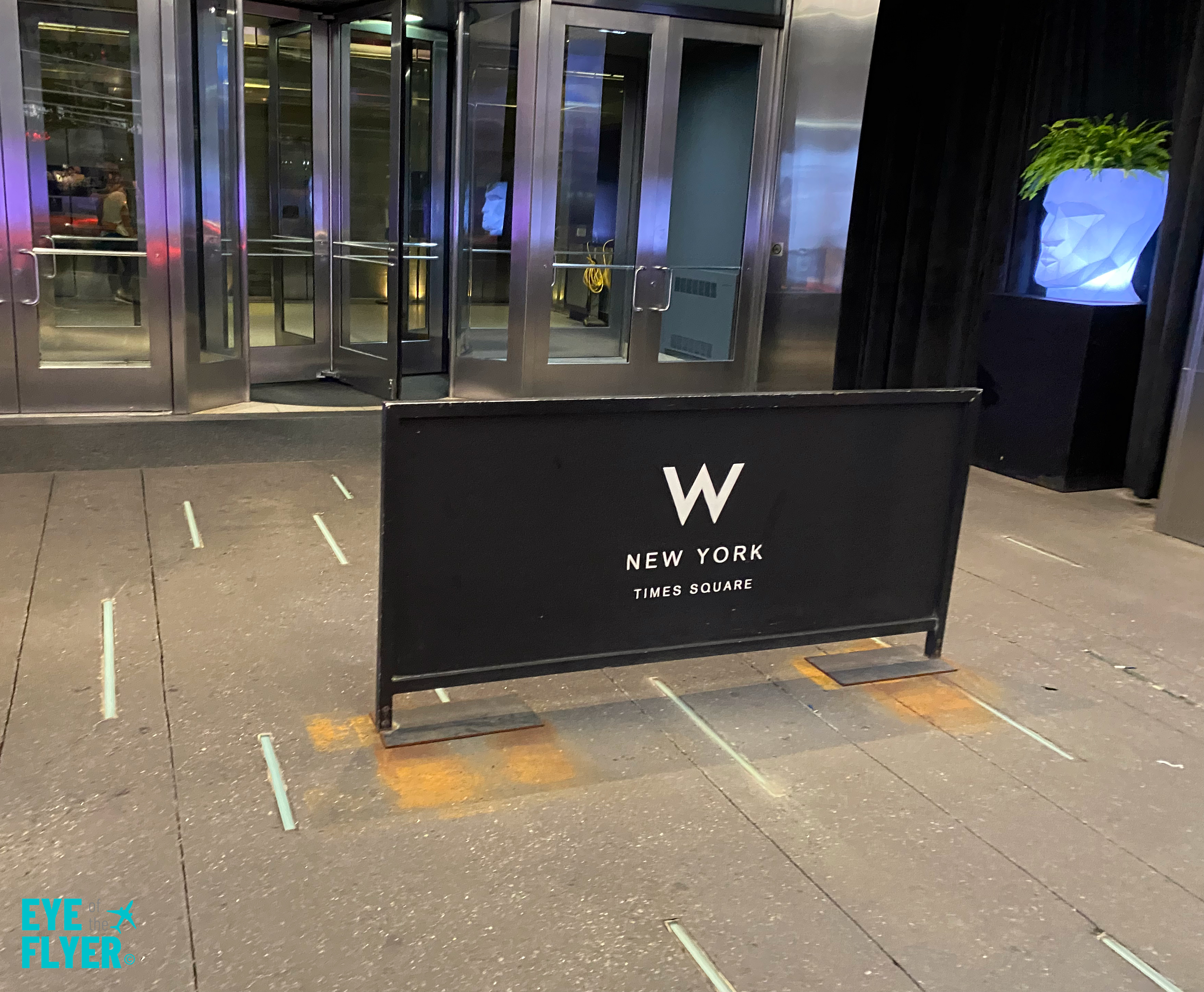 There’s a “W New York – Times Square” banner in front of the entrance.
