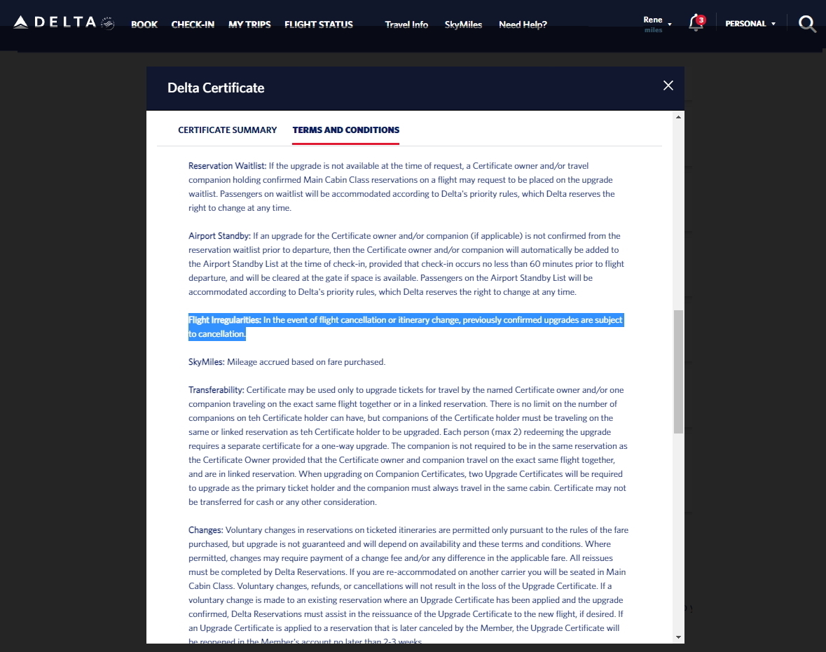 For a very long time Delta has had in the T&C for Global and Regional Upgrade certificates that if there are flight changes you may lose your confirmed space. In the past this rule has not been enforced if the changes were Delta’s fault. That is, say something like what happens almost every single Saturday of the year a schedule change event.