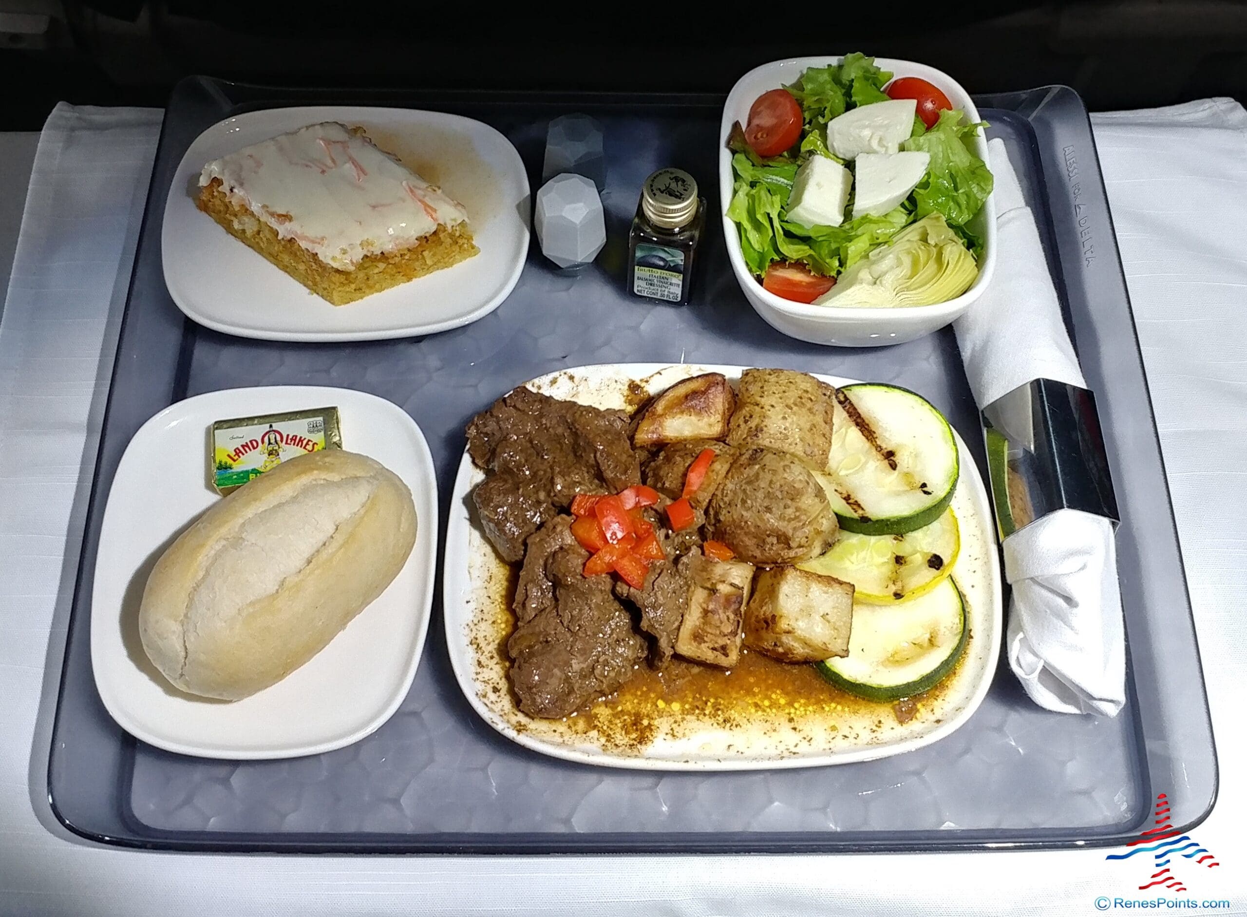 Do be aware that Delta hot meals are served only on flights traveling at least 900 miles, as well as hops between to/from Mexico, Central America, and the Caribbean. For anything under 900 miles, Delta says you’ll receive “savory and healthy snacks.” (Heck, René and his BRU Boys received a small lunch during their 30-minute KLM flight!)