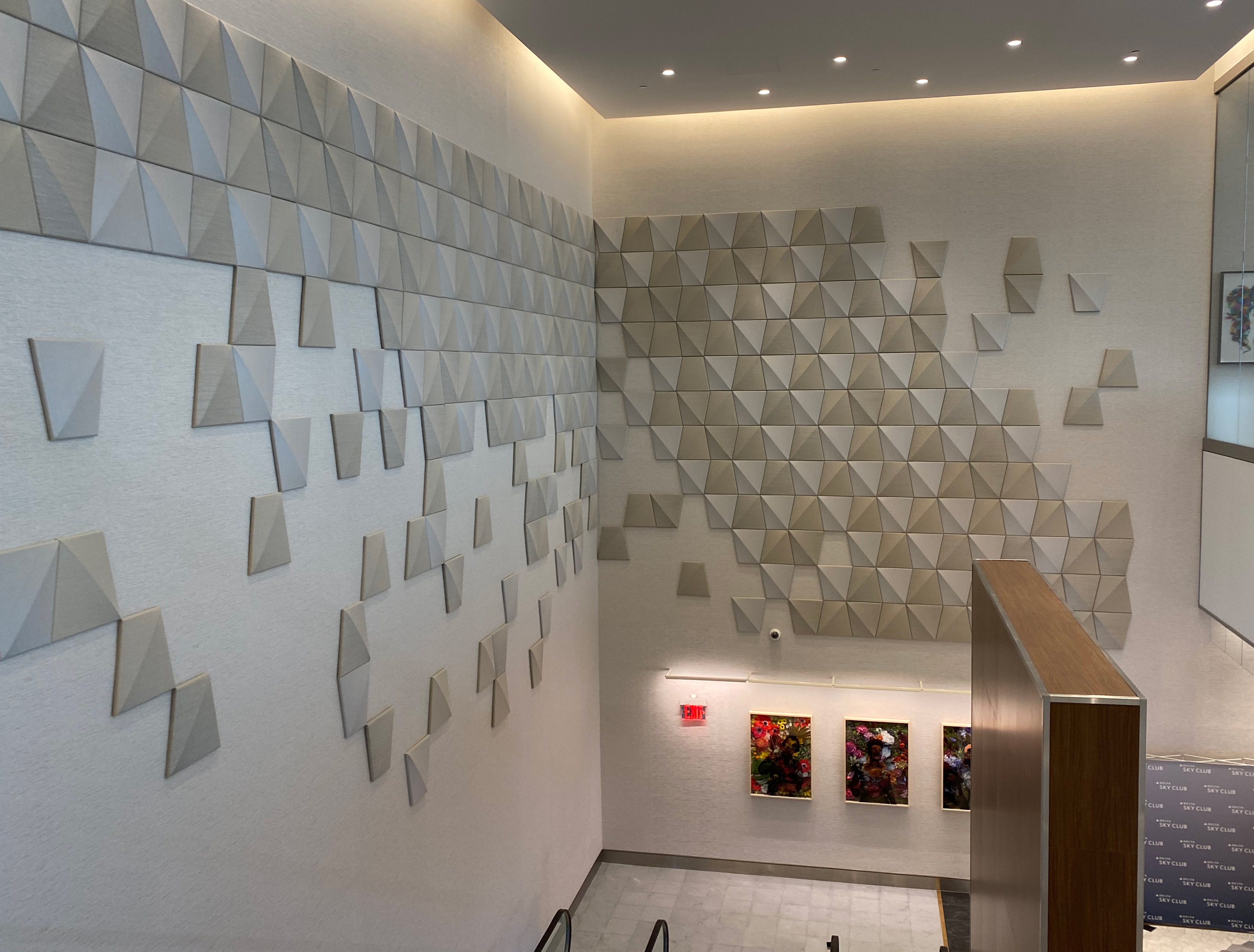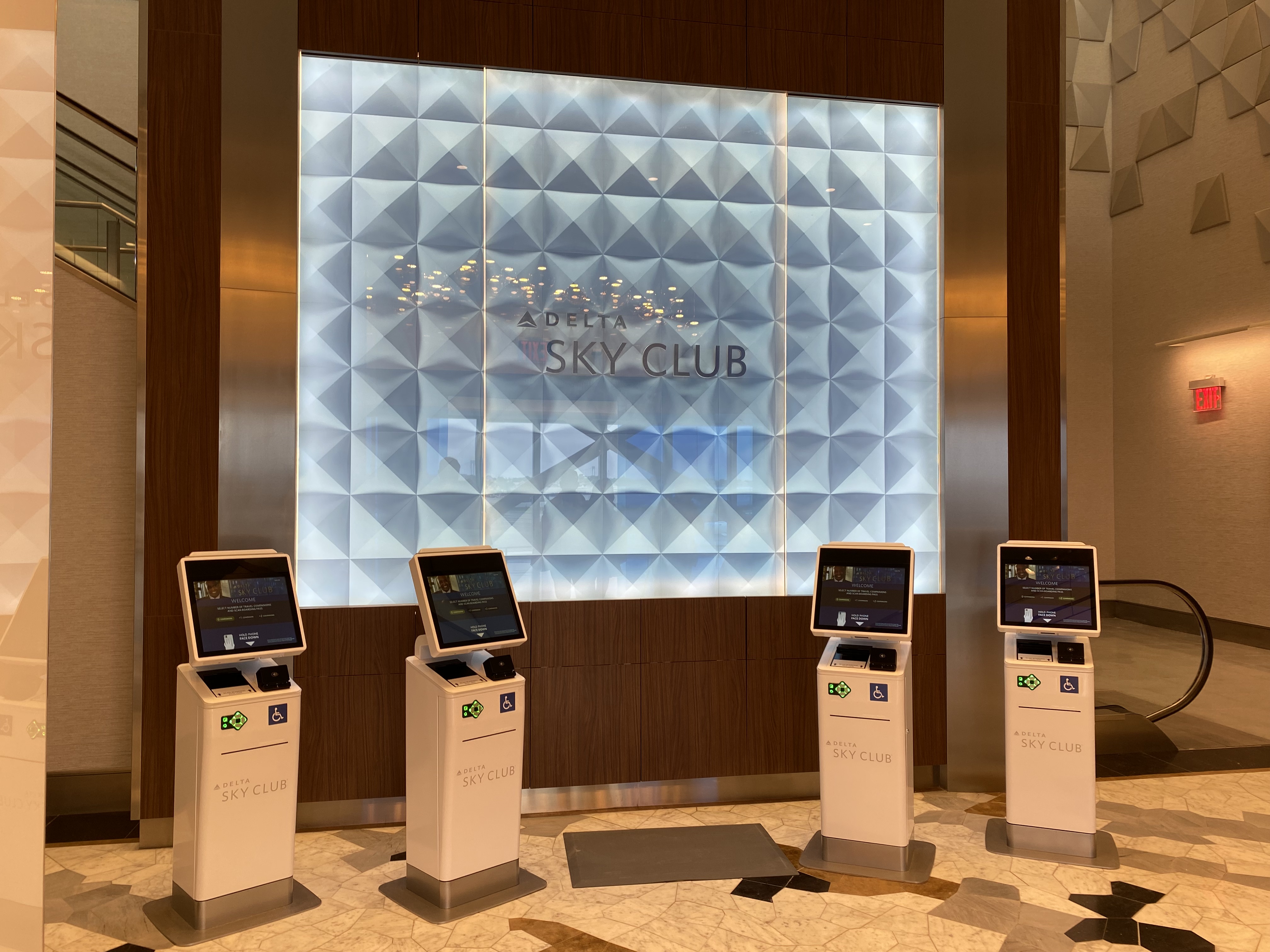 As you go up the escalators, notice the Delta logo art on the walls. (At least, that’s what it looks like to me.)