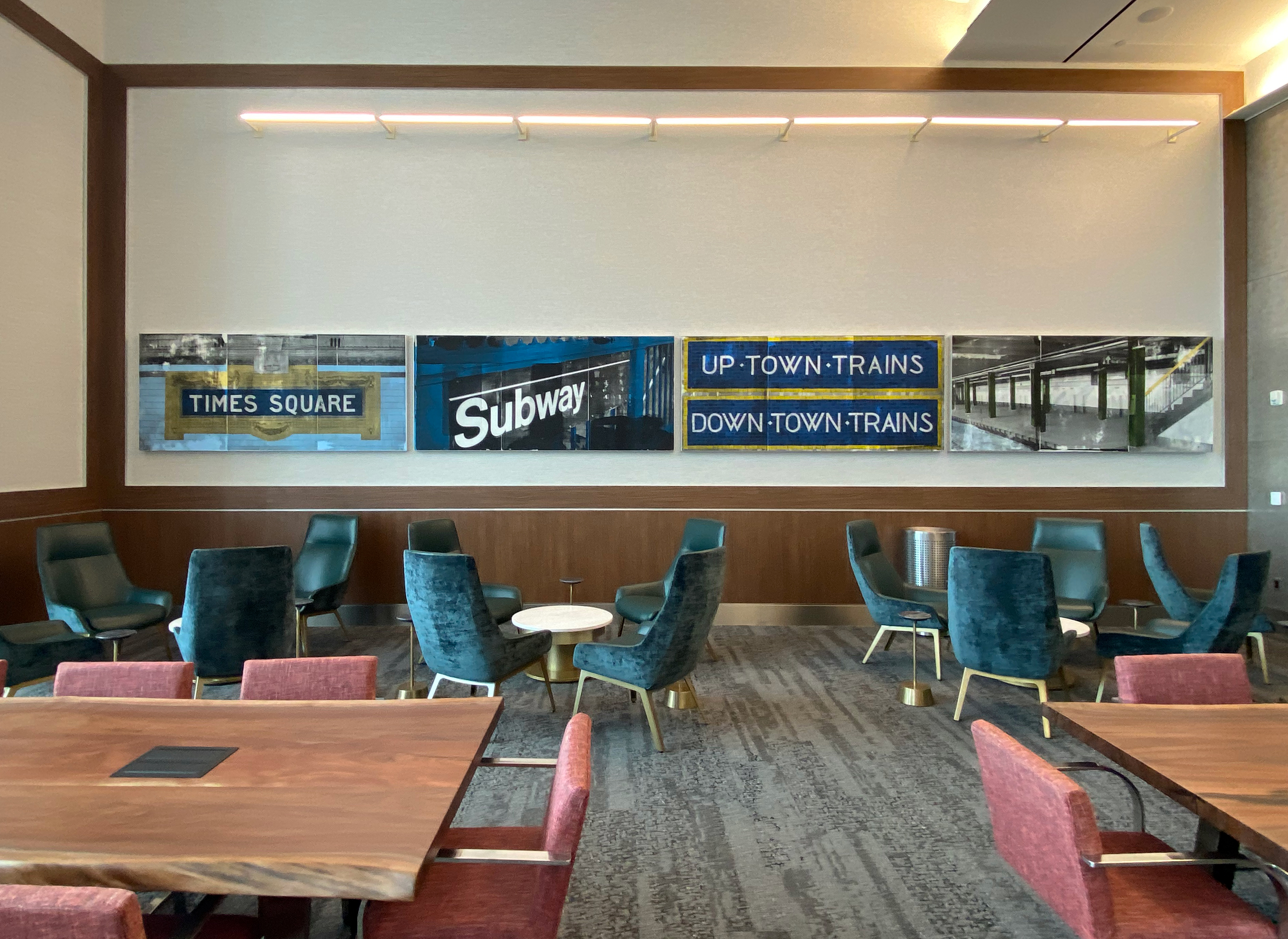 You need to take escalators, stairs, or an elevator to reach the club’s main area. Reader G tells us this artwork is by “mixed media artist and photographer Daesha Devón Harris.”