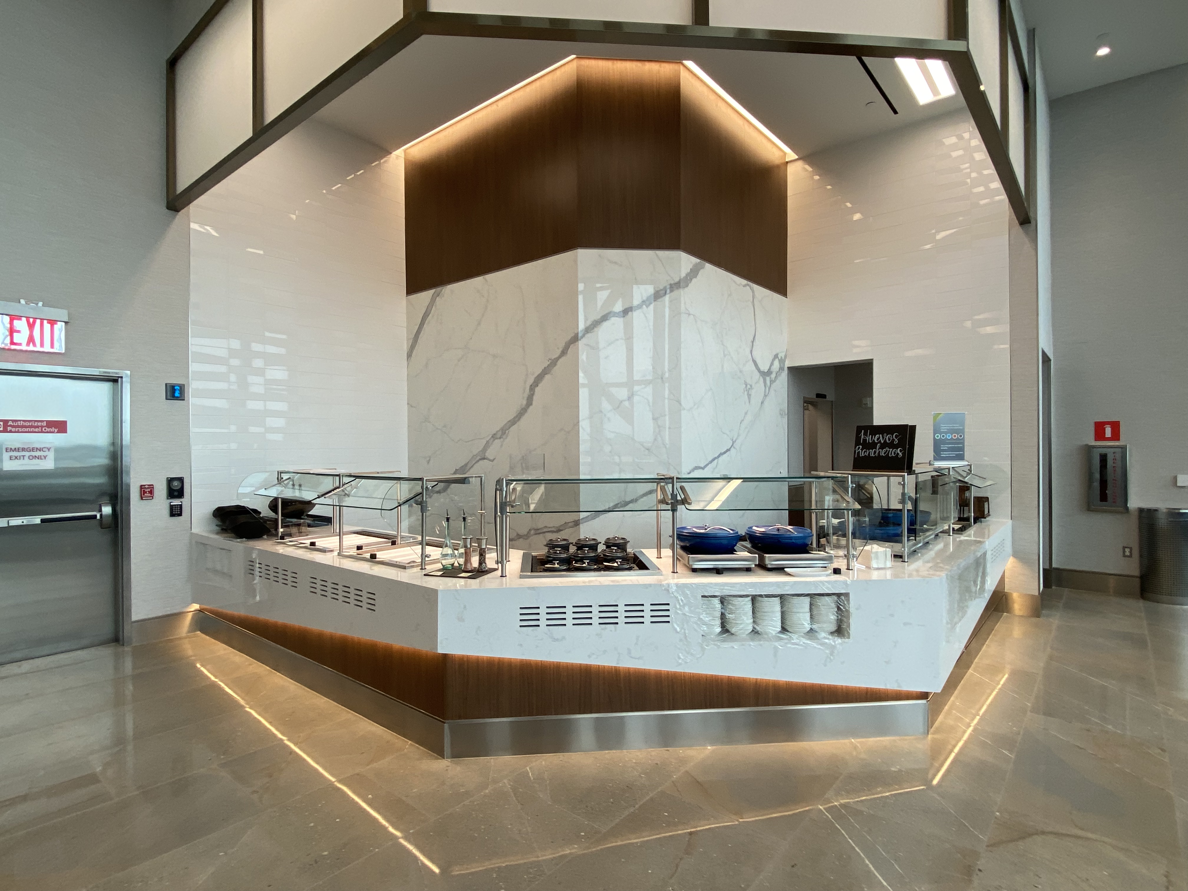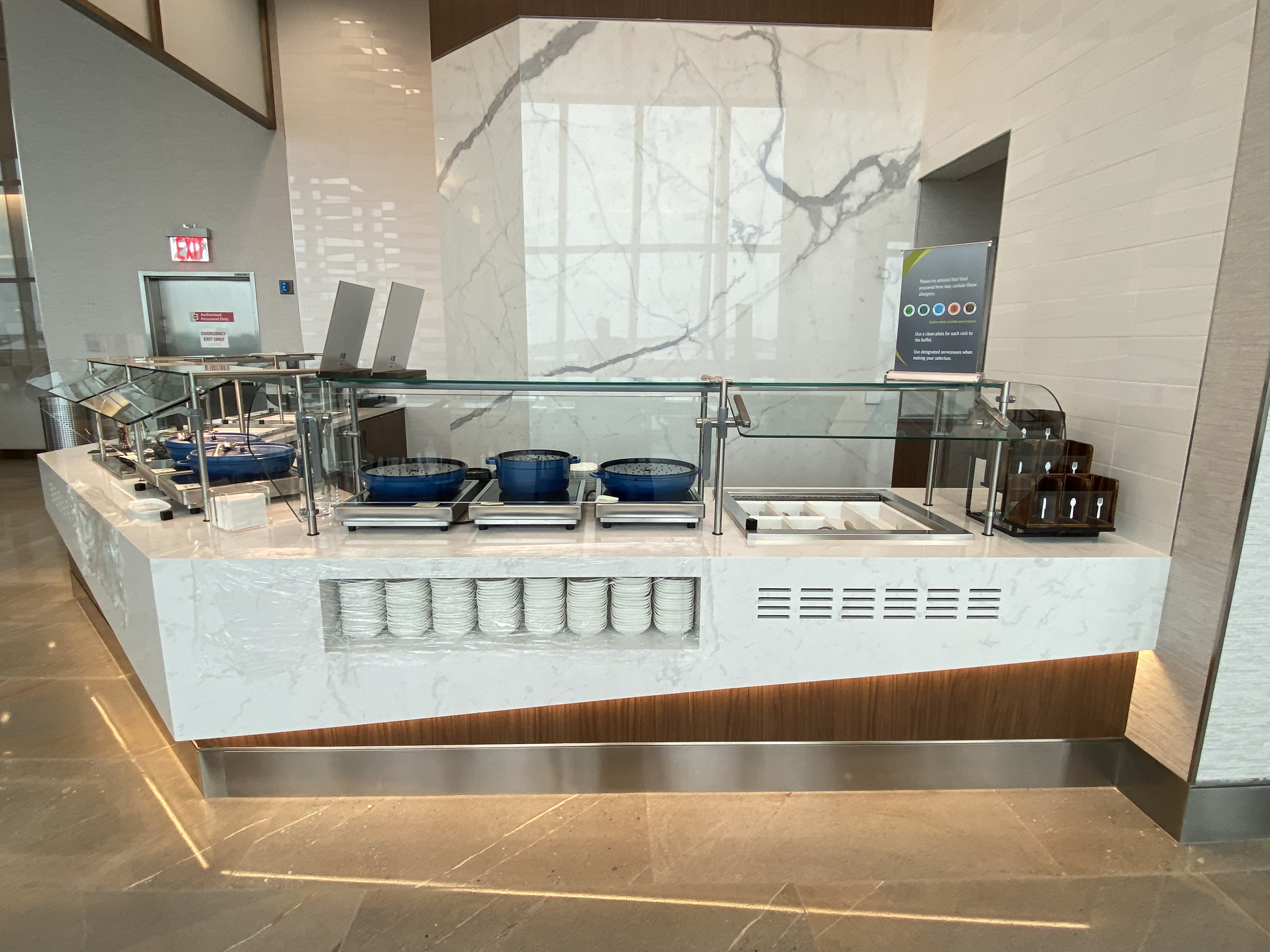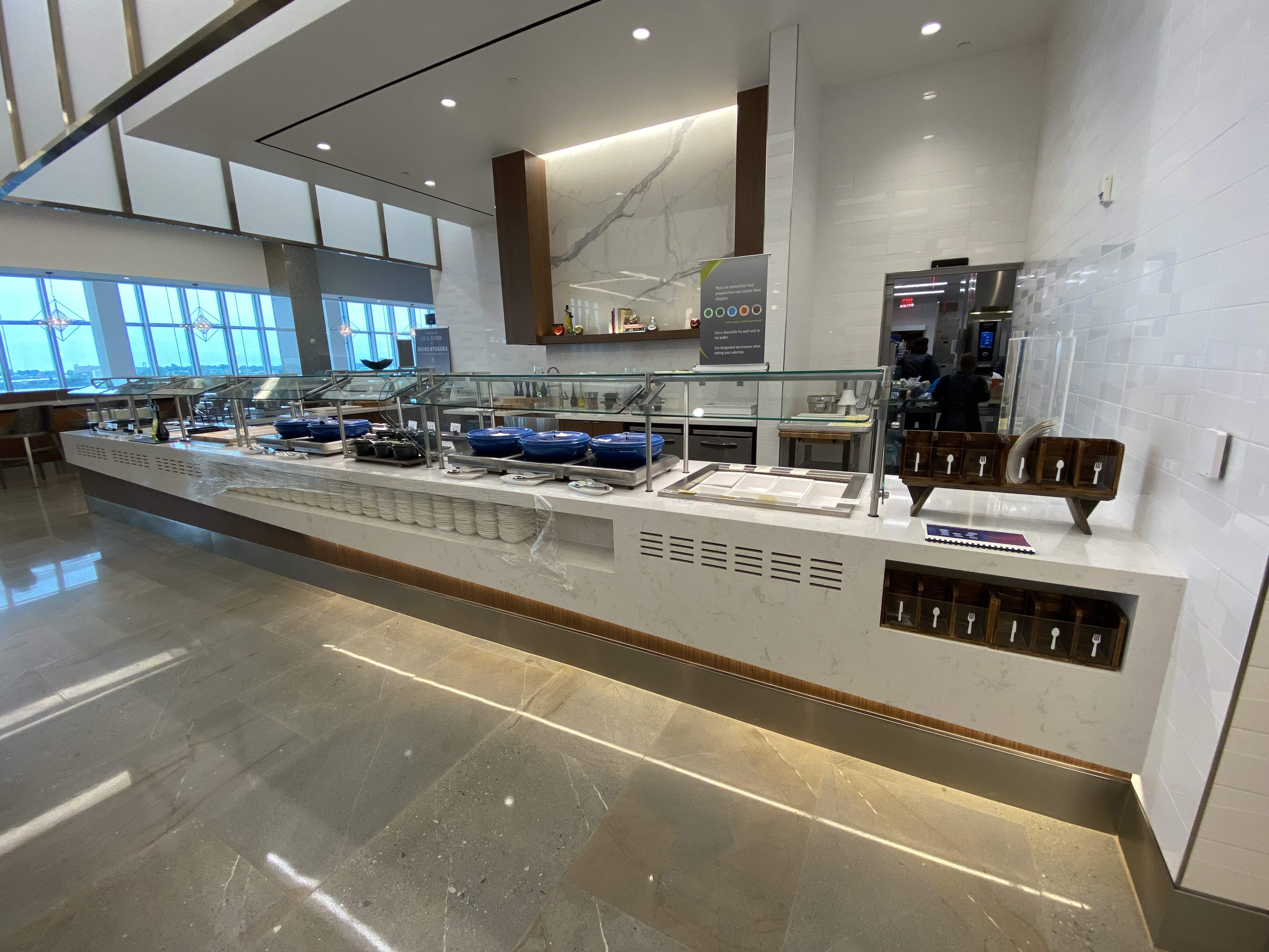 The Sky Club kitchen and bar were getting some final touches, so weren’t able to sample the grand fare people will enjoy on a daily basis. (You’ll have to tell us in the Comments section below what you think of the nosh and drinks when you visit!) But we have a bunch of pictures and details!