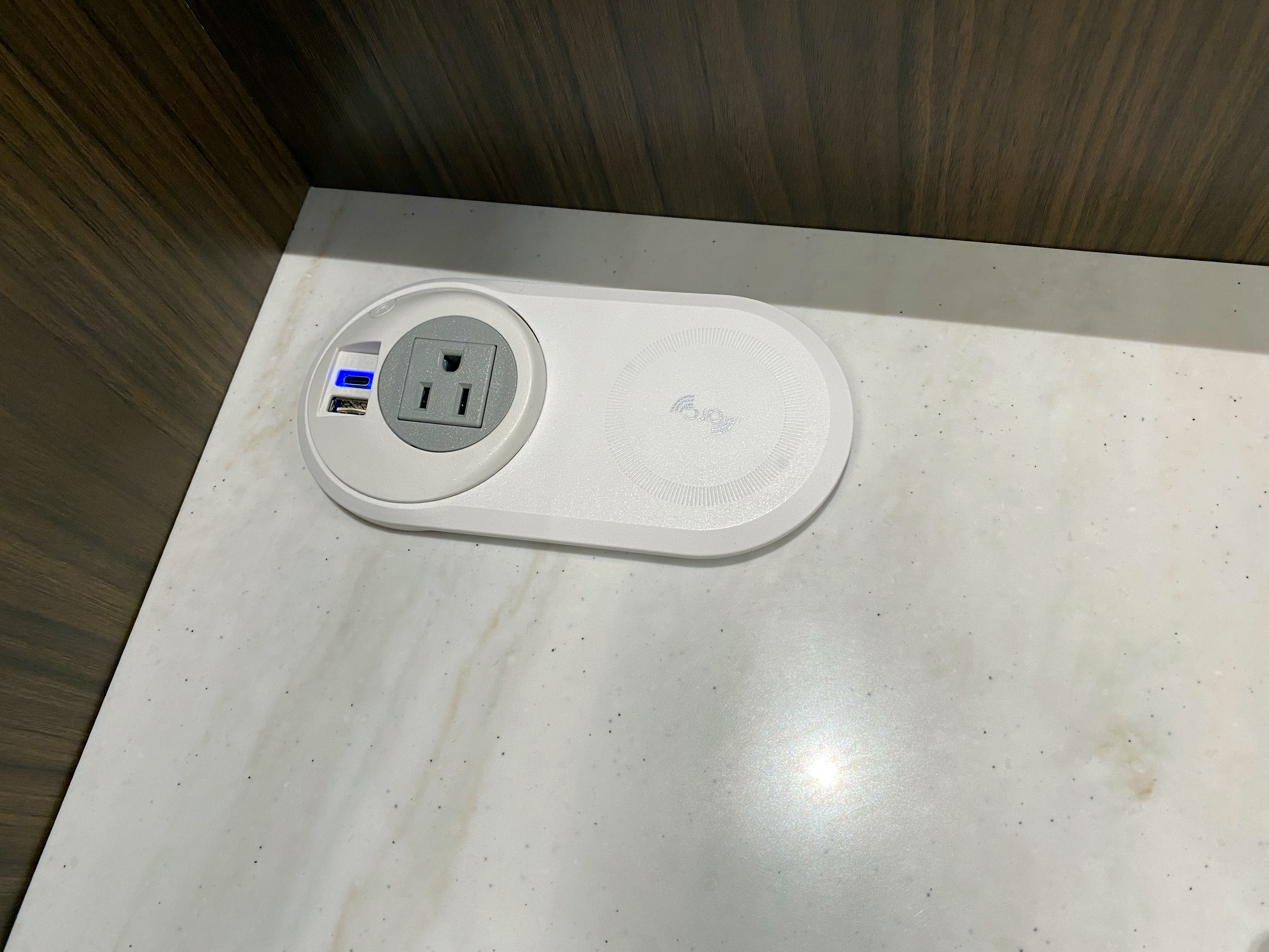 A few of the individual workstations offer wireless charging for capable devices.