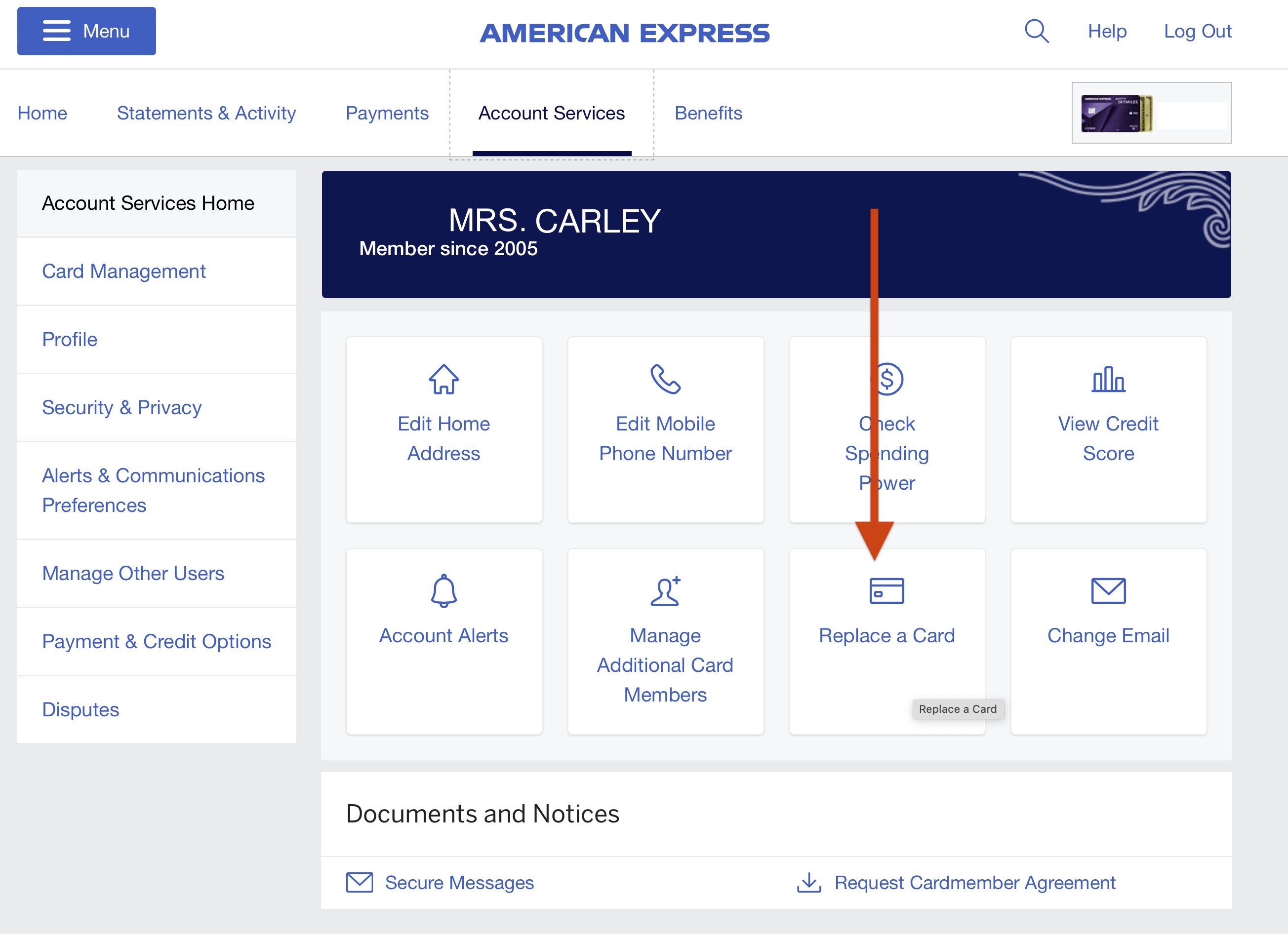 Log in to your account and select “Account Services.”