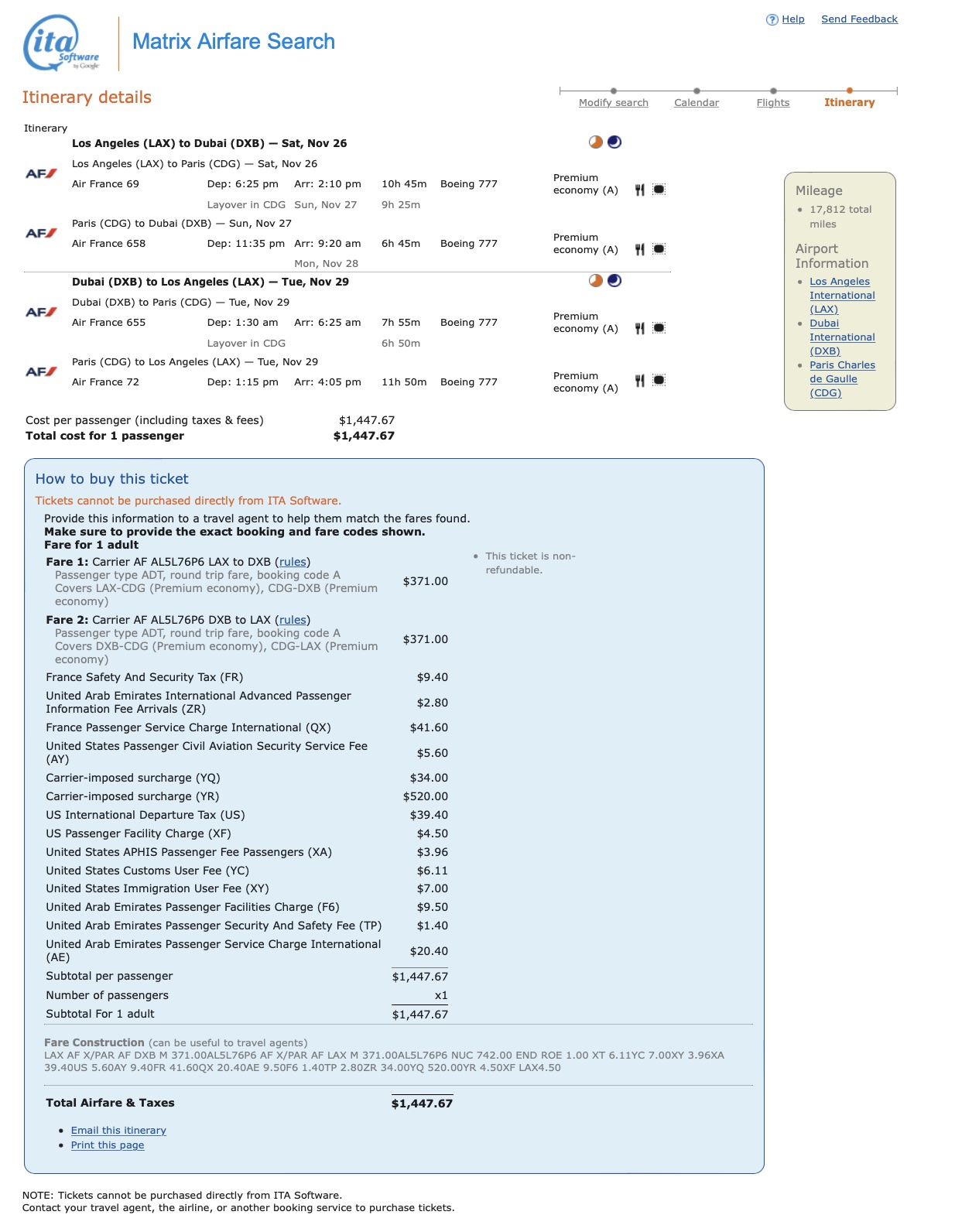 Correct. If I do lax-dxb (thru chg) nov 26-29 in premium economy on google flights or ita it shows Air France at $1442. If you click thru on the google flights it directs to standard economy (which is a very good price IMO), and if I try to modify to premium economy it says the flight is >$2500. When attempting directly on Air France or klm site it’s the same way where its >$2500. It’s been like this (for me) since the article was posted on 8/22 and I’ve tried each morning and evening. I figured it was because I just have always always booked directly through delta.com (I’m learning how silly that is…) that I didn’t know what I was doing.